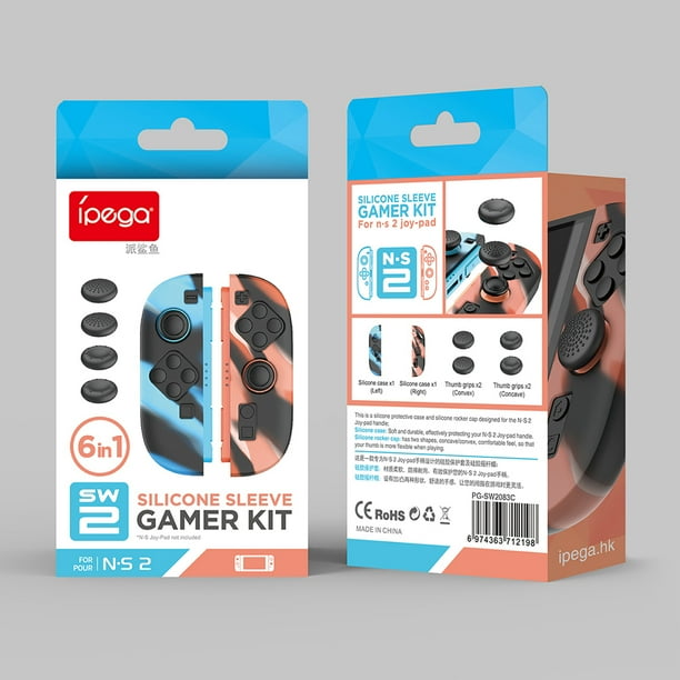 Enhance your gaming experience with the Ipega 6-in-1 Gamer Kit, designed specifically for the Nintendo Switch 2. This set includes two form-fitting silicone sleeves for your Joy-Con controllers and four interchangeable thumbstick caps (2 concave, 2 convex) to improve grip, comfort, and accuracy during gameplay.
