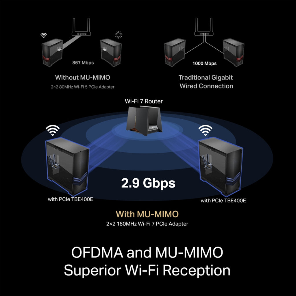 - WiFi 7 Standard — Unleash the full potential of the 6 GHz band to double the bandwidth of the last generation