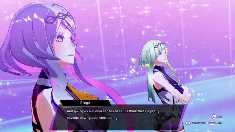 Soul Hackers 2 takes place in the mid-21st century, where a sentient being of data called Aion watches over the world. When Aion discovers the fate of the world is in jeopardy, it sends two agents, autonomous fragments and physical realizations of Aion's mind called Ringo and Figue, to Earth to find and protect two individuals who are essential to saving the world. Unfortunately and shockingly for Ringo, Figue, and the world, those important people are already dead.
