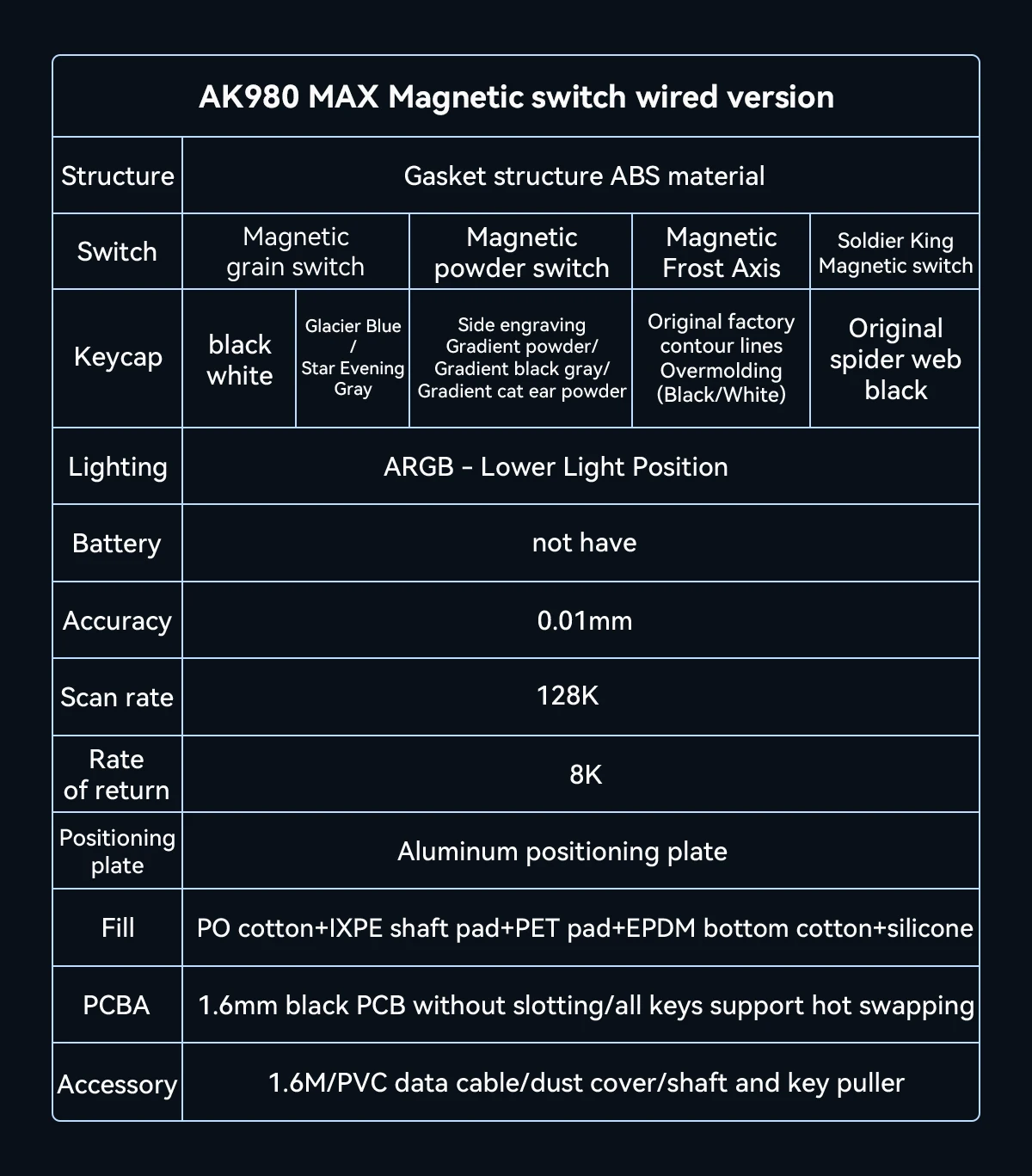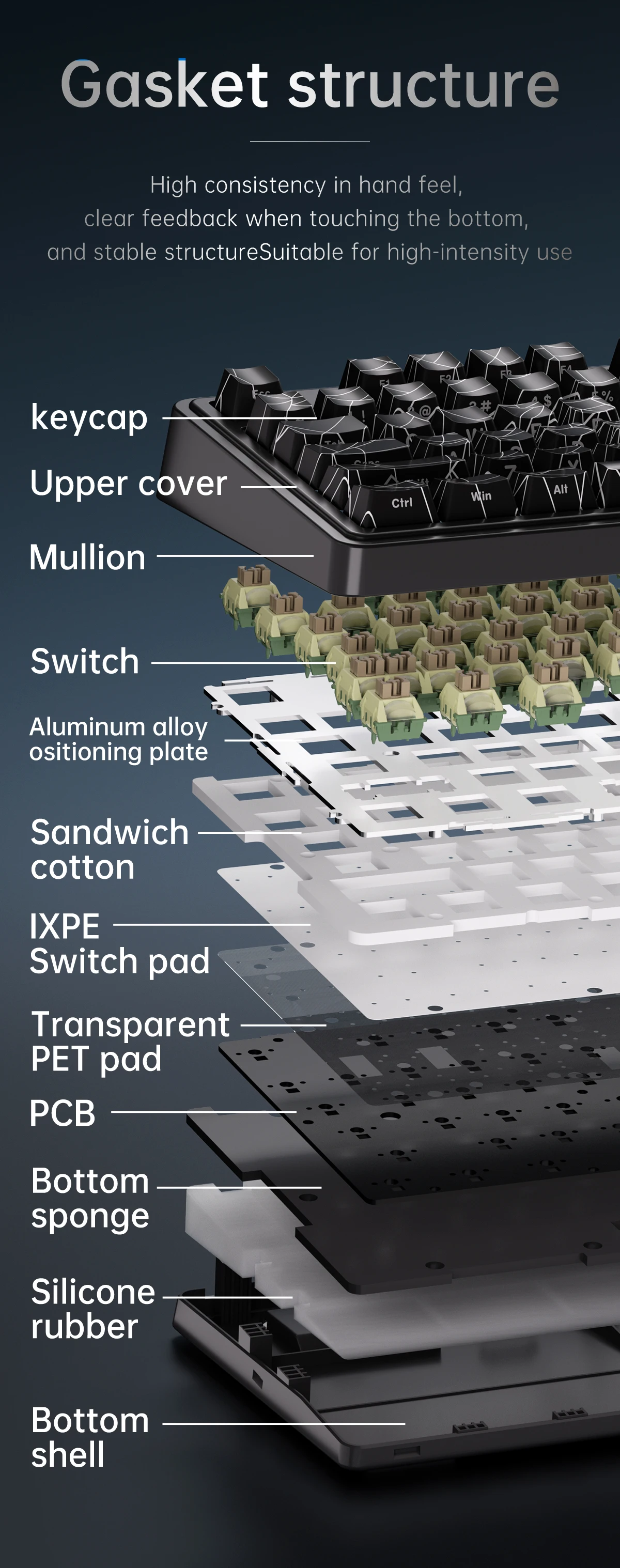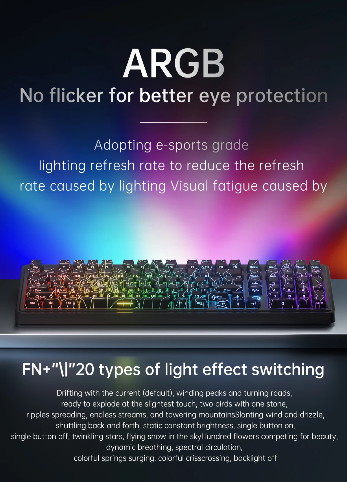 Crafted for those who demand both elegance and performance, this 98-key mechanical keyboard features a sleek gradient black-to-grey finish that radiates modern sophistication. The gasket-mounted design ensures a smooth, cushioned typing experience, while the magnetic powder shaft switches deliver precise actuation with a satisfyingly crisp feel. Hot-swappable sockets make customization effortless, and vibrant RGB lighting lets you tailor the glow to match your unique style, perfect for work, play, and everything in between.
