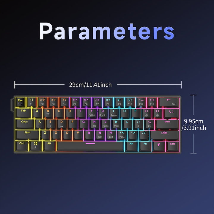 Note: Other color is for illustration purposes only. Specification: Brand NACODEXxAJAZZ Model NK61 Transmission mode USB Wired Keycaps OEM Interface type Type-C interface Product dimensions <290x99.5x36mm Product weight ≈410g Wire length 1.5M Lighting effects mixed light, 1...