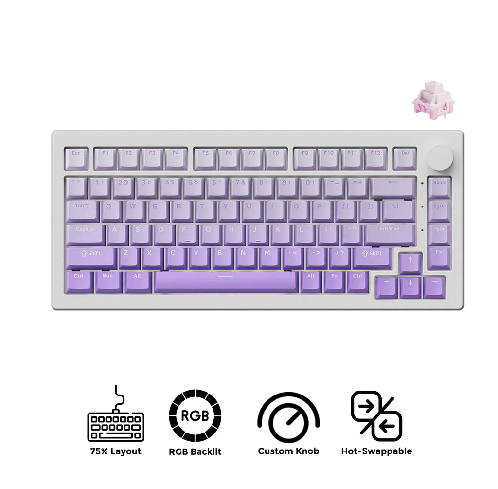 Akko 5075 V3 Multi-Mode RGB Hot-Swappable Mechanical Keyboard (Gradient Purple) (Akko Frost Pink Switch)