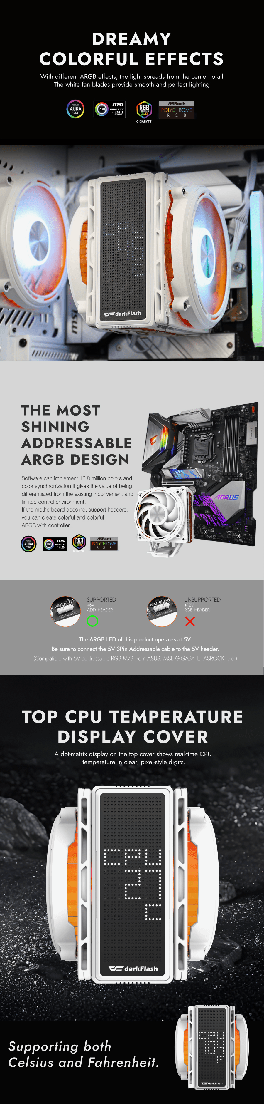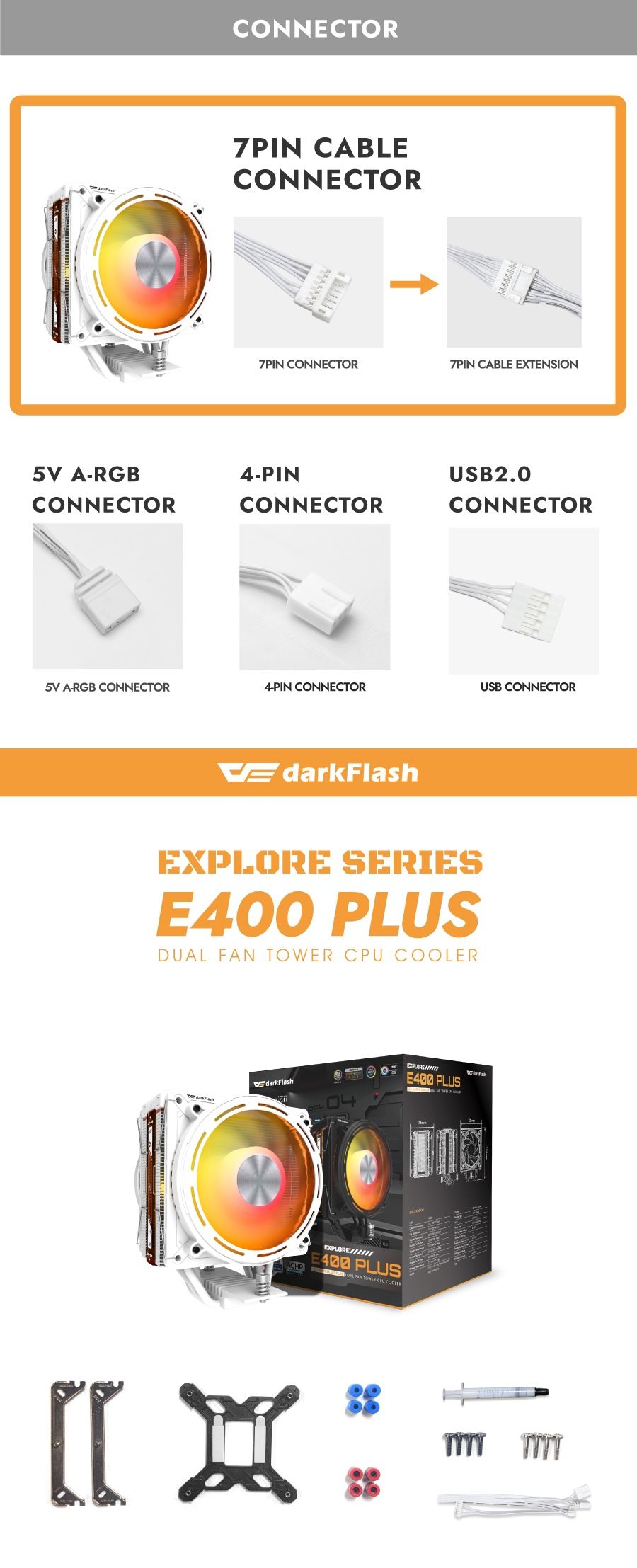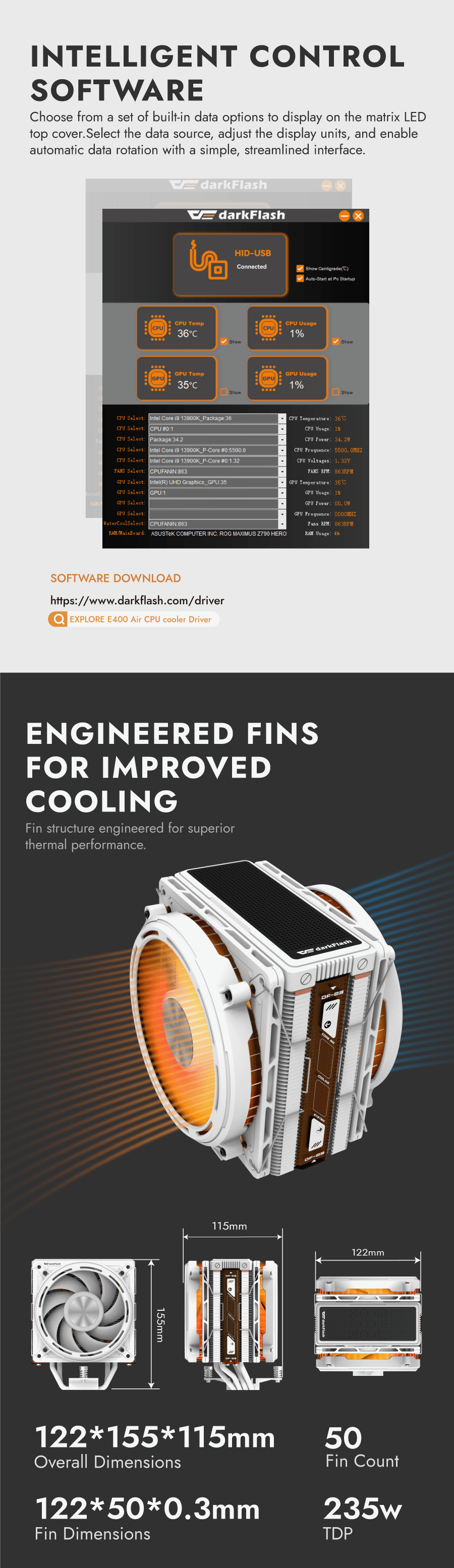 DarkFlash E400 Plus LED Matrix Display Dual Fan Tower CPU Cooler (Black, White)