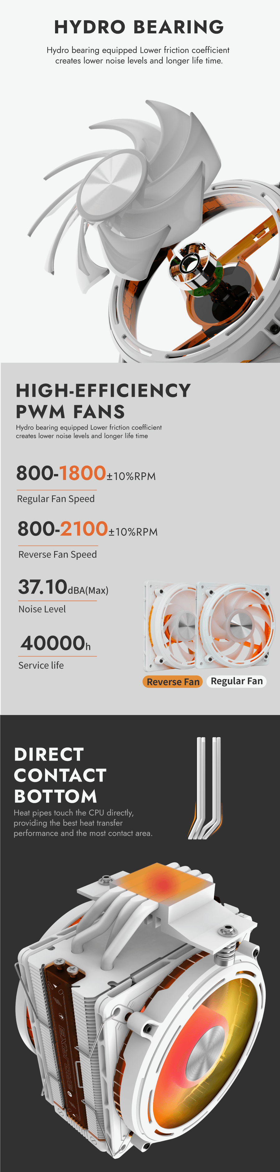 Specification Category Detail Main Specifications (Cooler) Height 155 mm Width 122 mm Depth 115 mm Noise Level (Max) 37.1 dBA Standard Fan Specifications Fan Dimensions 120 x 120 x 30 mm Fan Speed 800-1800 RPM ±10% Airflow 50.18 CFM Static Pressure 1.81 mm H2O Beari...