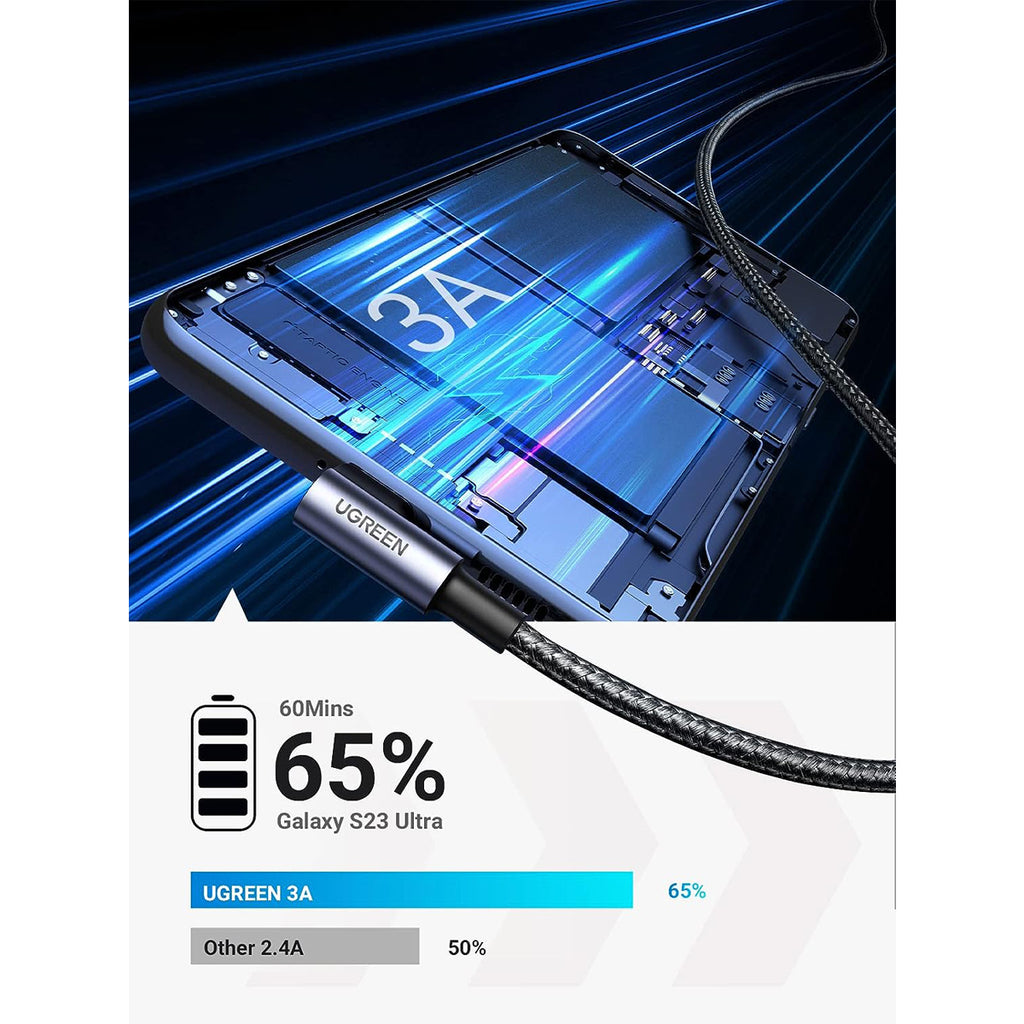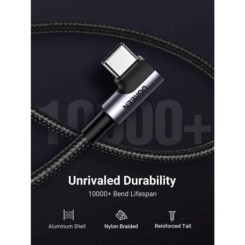 - Right Angle USB C: With an innovative 90 degrees L design, UGREEN USB C cable is more convenient and more comfortable for playing games, watching videos, reading e-books when you lie on the couch or bed while charging.【Note : The maximum allowable thickness of the case is 2mm/0.08 inch】