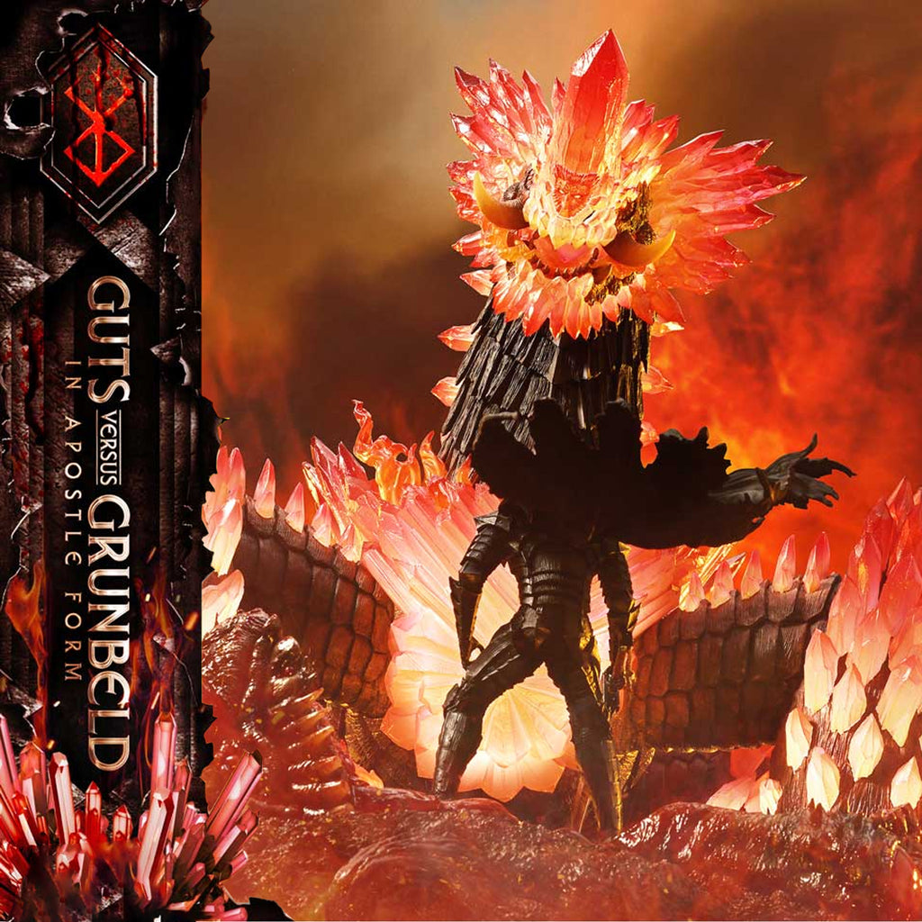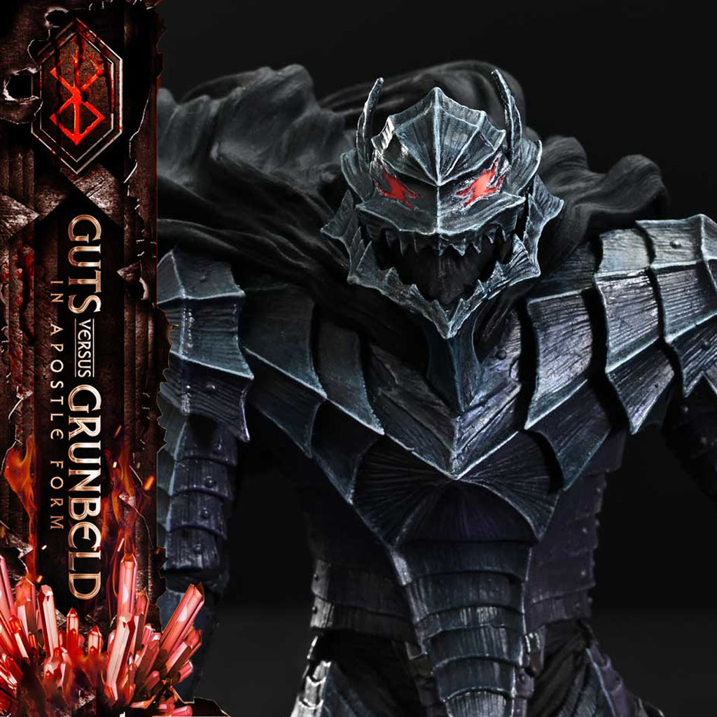Encased in the cursed armor, Guts faces Grunbeld in his true Apostle form. The fierce battle from Volume 27 of "Berserk" takes shape within the Ultimate Diorama Masterline.