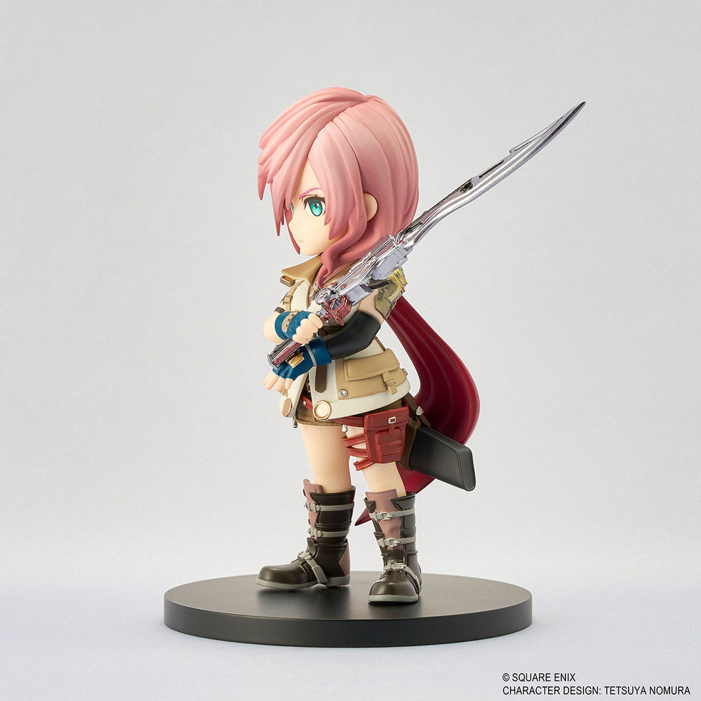 Lightning from "Final Fantasy XIII" joins the "Adorable Arts" figure series from Square Enix! Interchangeable parts allow you to display her in three different poses: two poses with her sword, and one with her gun. Her base is included too. Order her for your own collection today!