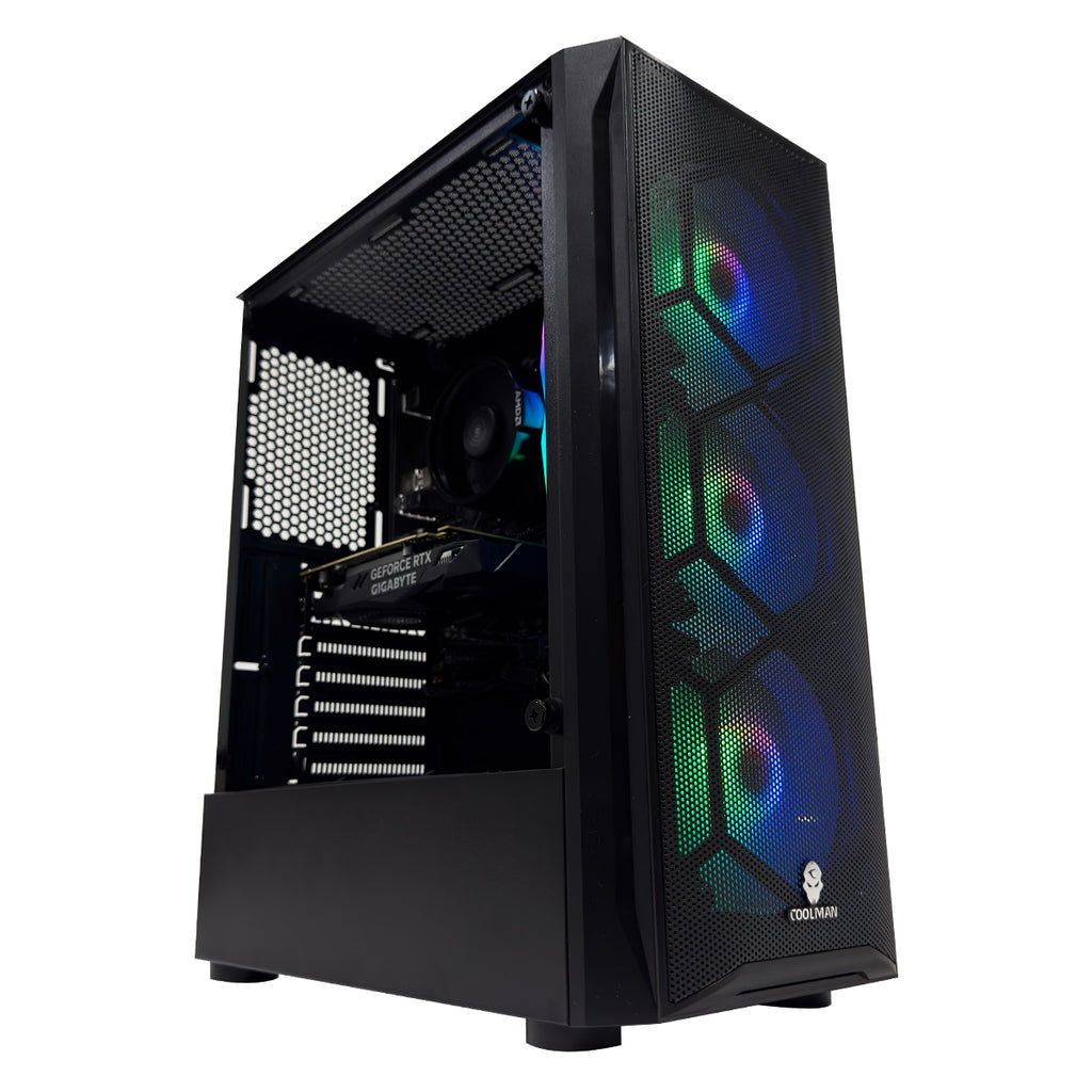 CASING Coolman Aurora Gaming Case With 3X120MM RGB Fans (Black)