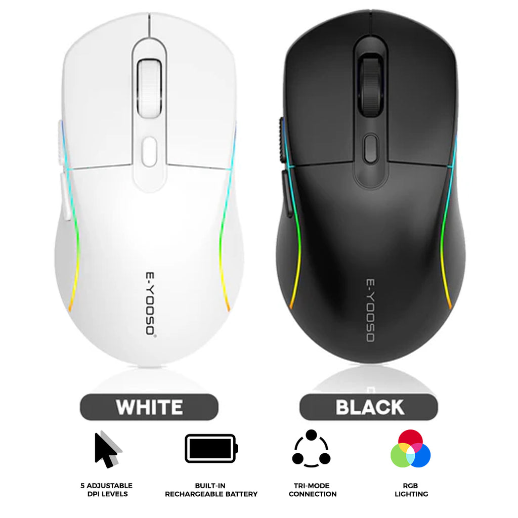 E-Yooso X-53 RGB Tri-Mode Mouse The E-Yooso X-53 RGB Tri-Mode Mouse offers versatile connectivity and high-performance tracking for both professional and casual use. Designed for seamless integration across multiple platforms, this mouse ensures a reliable connection whether you are at your desk ...
