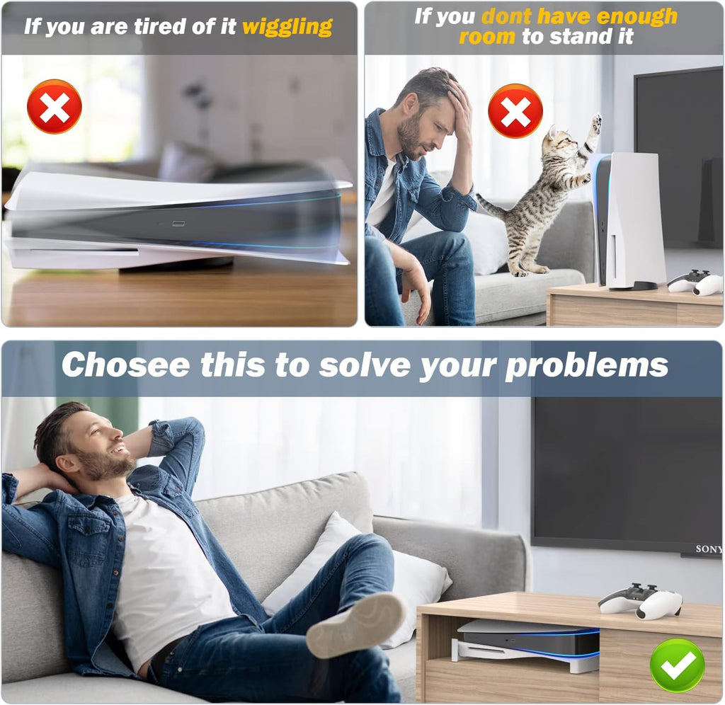 Perfect Replacement for Vertical Stand - Upgraded designed for the PS5 console, keep your PS5 console sit flat in the entertainment center without scratching the surface and allow for air flow, it is a great help for the PS5 console heat dissipation, the PS5 lay down stand is a perfect replacemen...