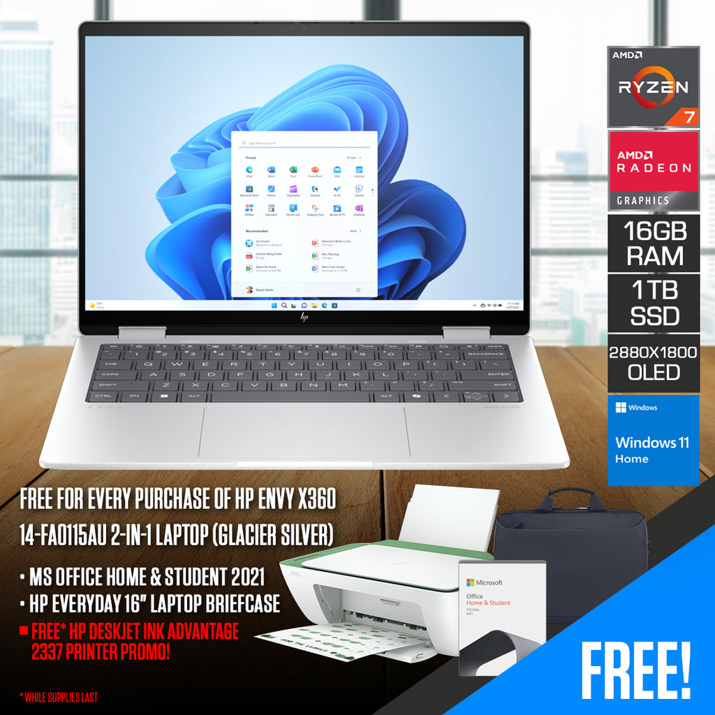 Boost your productivity with the HP Envy x360 14" 2-in-1 Laptop PC, combining AI tech and the latest AMD Processor for enhanced processing speed, efficiency, and battery life. Its 2-in-1 design lets you easily switch from laptop to tablet. Made with recycled materials and plastic-free packaging, this laptop PC is good for you and the planet.