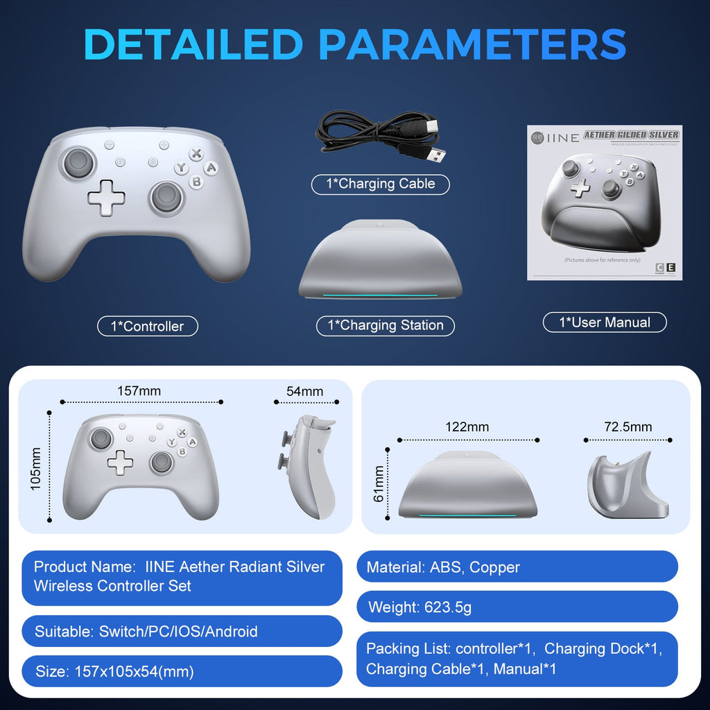 IINE Aether Radiant Silver Wireless Controller with Charging Dock for Nintendo Switch / Nintendo Switch OLED (L1018)