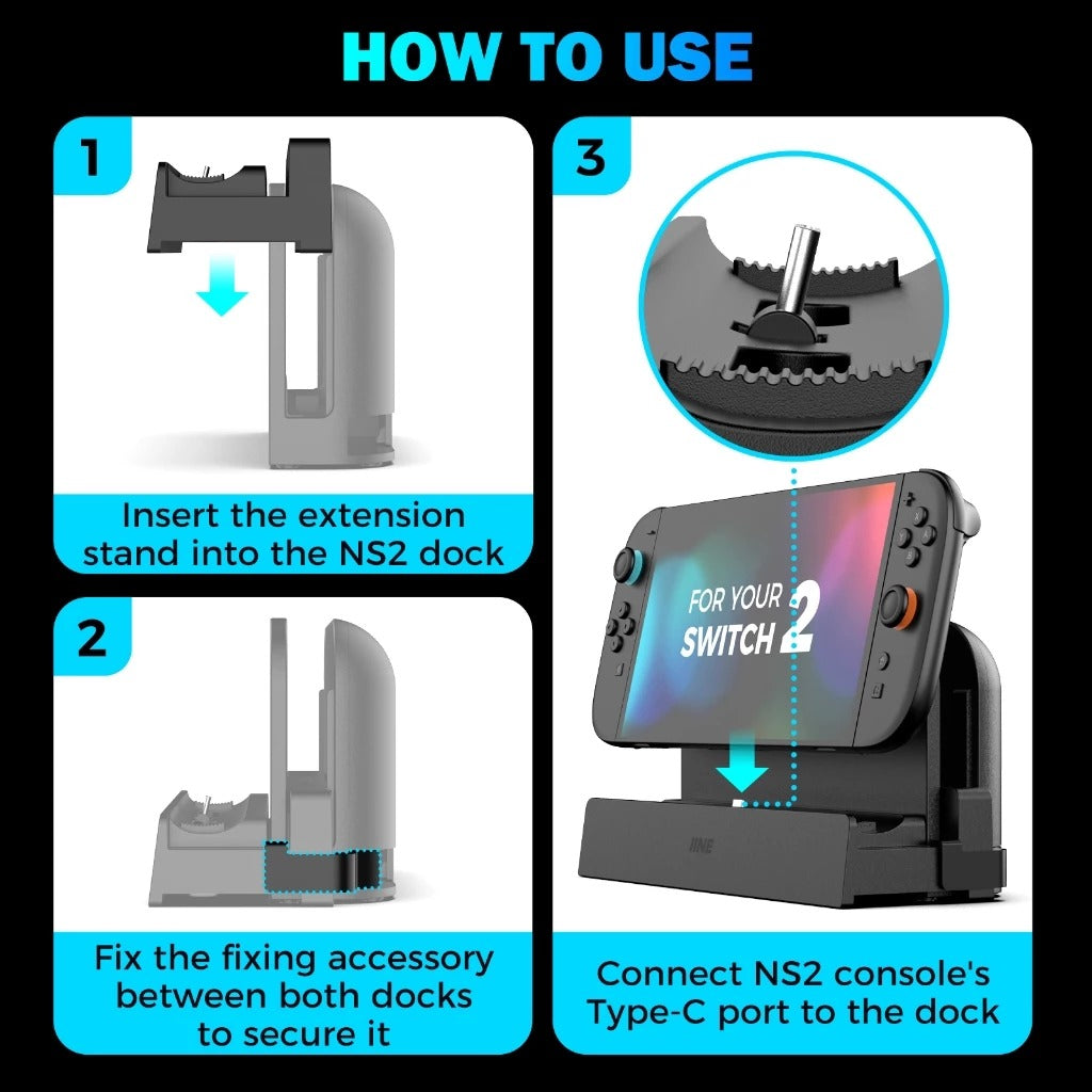IINE Video Dock Extension Stand for Nintendo Switch 2 (Black) (L1216) Note: Console & other accessories are not included, for illustration purposes only.