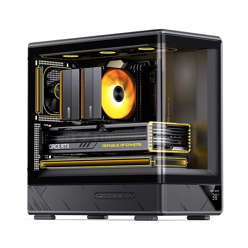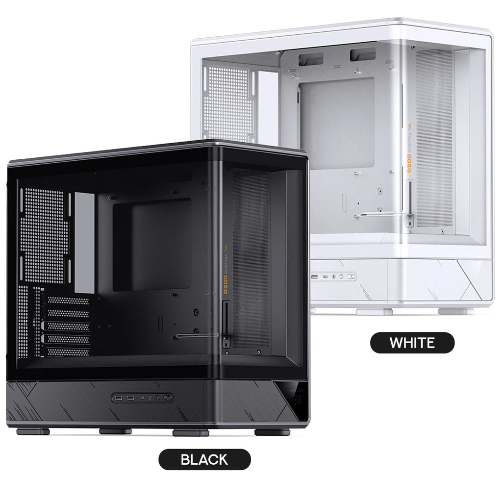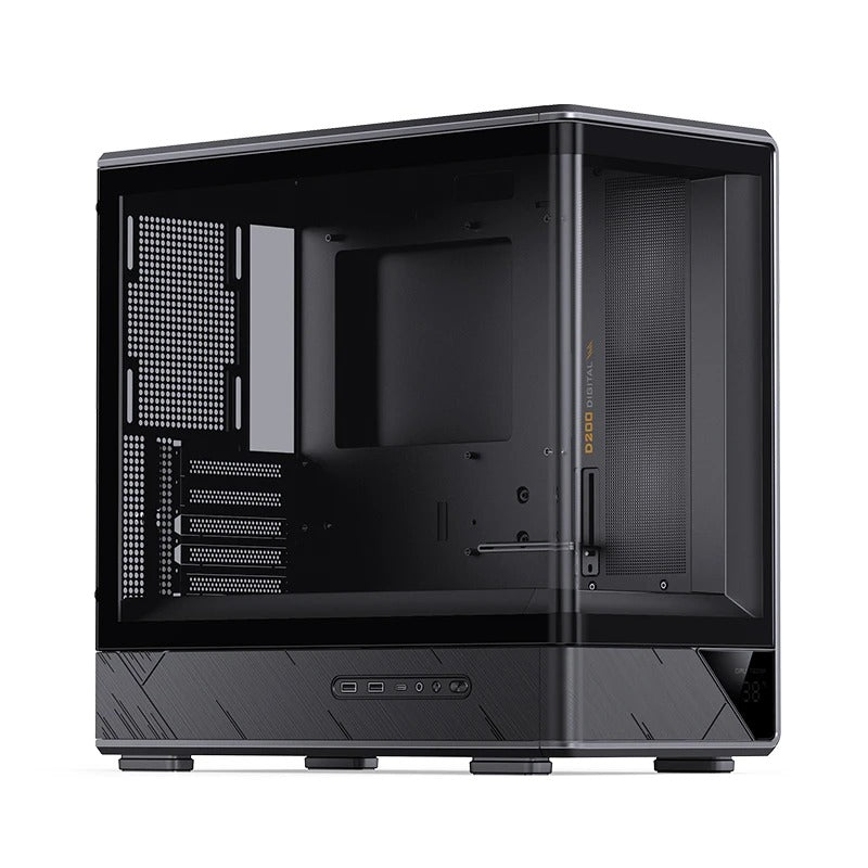 The Jonsbo D200 M‑ATX Computer Case is a compact but feature‑rich chassis designed for Mini‑ITX and Micro‑ATX PC builds. Its mid‑tower form factor combines modern aesthetics with practical functionality, making it suitable for both gaming and productivity systems. The case features a curved tempered glass side panel that provides a panoramic view of your components, ideal for showcasing your build. A built‑in digital CPU temperature display on the front panel adds practical monitoring at a glance