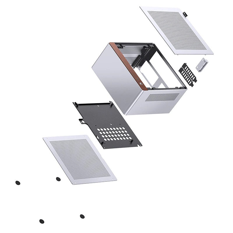 NV10 is a desktop MINI-ITX small chassis with an aluminum alloy sandblasting process, delicate metal texture, and North American walnut trim. It is simple/textured/atmospheric, compatible with 1U Flex power supply, and has a compact and portable capacity of about 4.5L. It can be placed in two flexible ways, standing or lying. It’s also equipped with PCl-E4.0 extension cable, supporting low-profile graphics card ≤ 190mm.