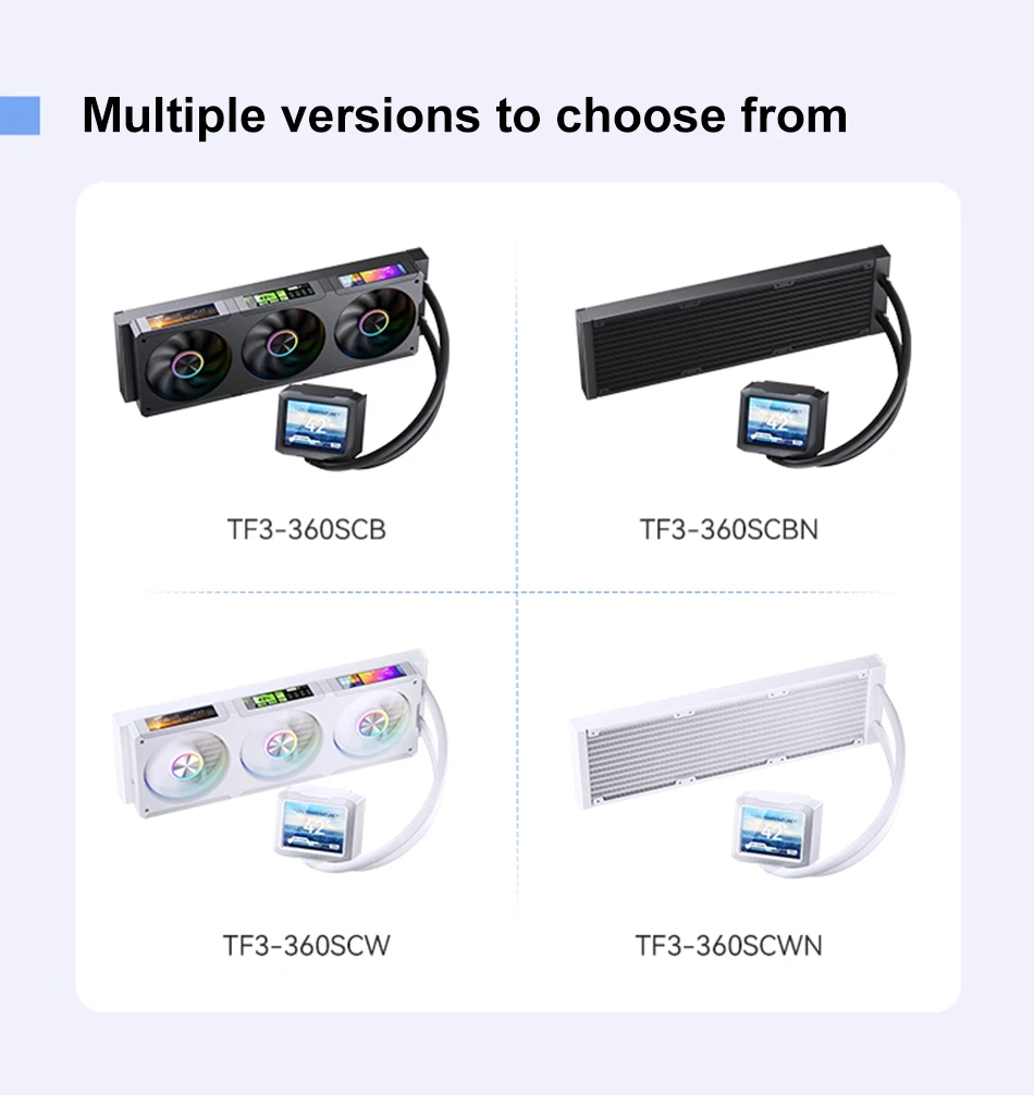 | Size | Pump: 92.5mm × 87.5mm × 63mm Radiator: 397mm × 120mm × 27mm Fan: 363.8mm × 130mm × 28mm |