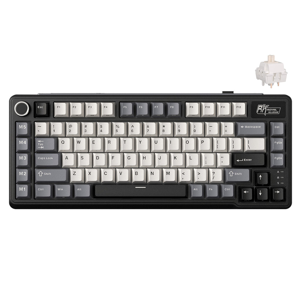 Royal Kludge RK L75 Tri-Mode RGB 85 Keys Hot-Swappable Mechanical Keyboard Knight Black (Cream Switch, Beige Switch)