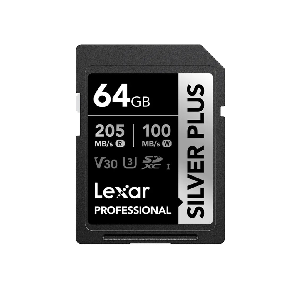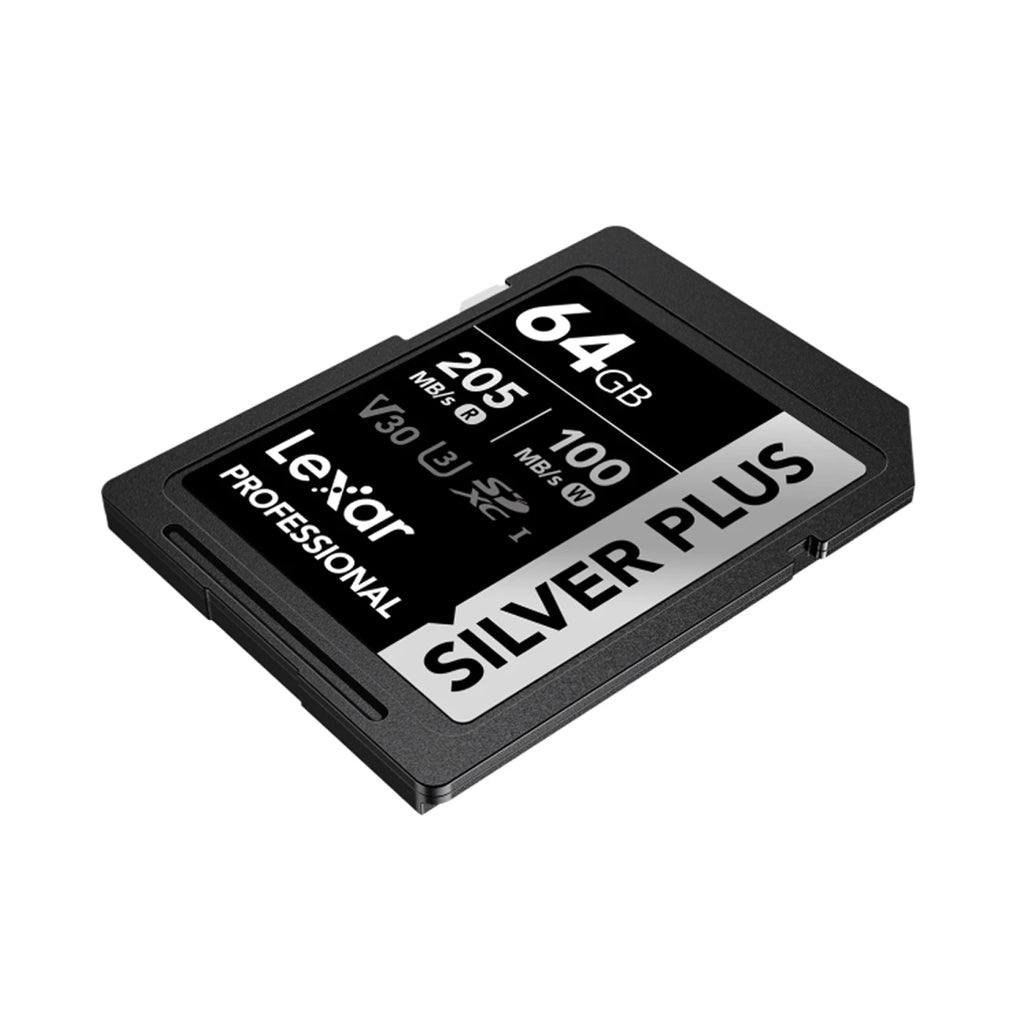 Lexar Professional SILVER PLUS 64GB SDXC UHS-I C10 U3 V30 205MB/s Read 100MB/s Write SD Card (LSDSIPL064G-BNNNG)