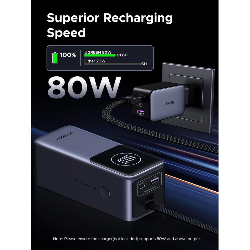 • 1.6 Hours Full Recharge – Ready When You Are: Recharge the power bank itself in only 1.6 hours with 80W input. Make the most of layovers, hotel stays, or your morning routine—stay fully powered for the day ahead.