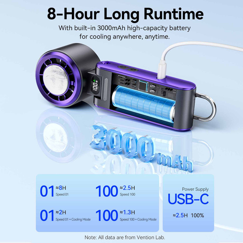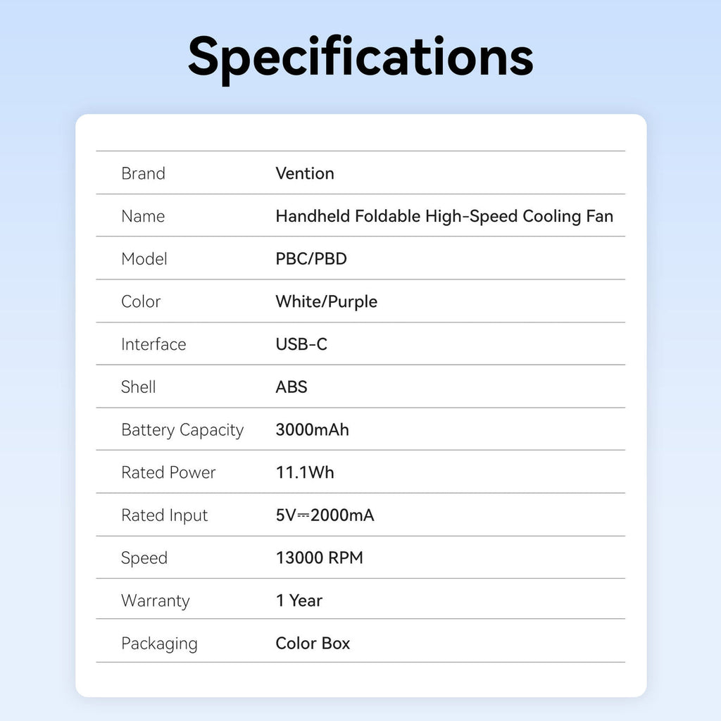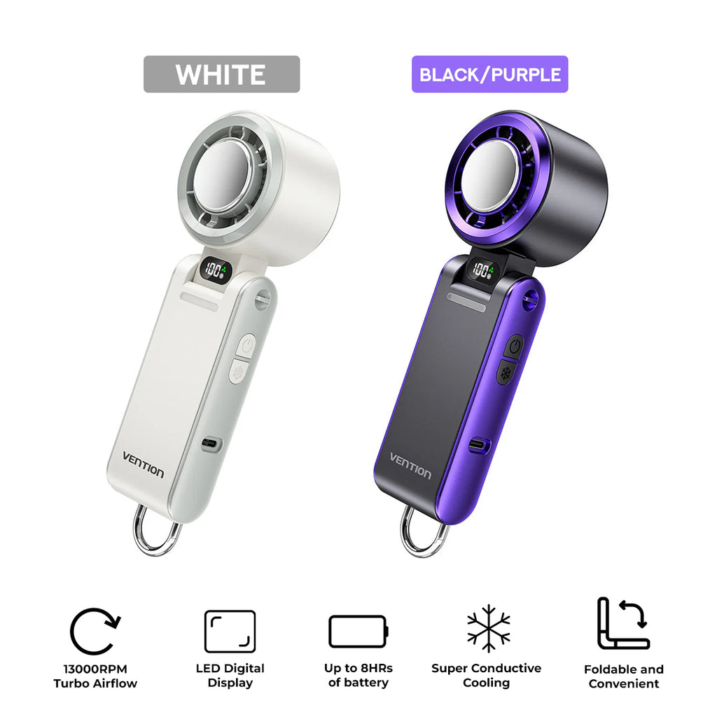 Vention Handheld Foldable High-Speed Cooling Fan (White, Black/Purple) (PBCW0, PBDV0)
