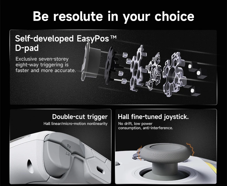 Equipped with custom Hall joysticks rated for 500,000 cycles and two-stage Hall linear triggers with adjustable stroke length. The innovative trigger lock system allows seamless switching between long and short strokes for personalized gaming control and enhanced precision.
