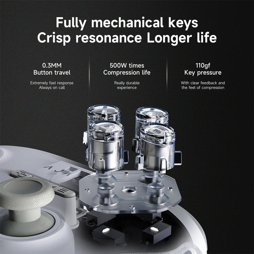 All buttons utilize silent conductive technology including 200,000-cycle sub-life ABXY keys, shoulder buttons, and D-pad for quiet operation without compromising tactile feedback. Perfect for late-night gaming sessions without disturbing others.
