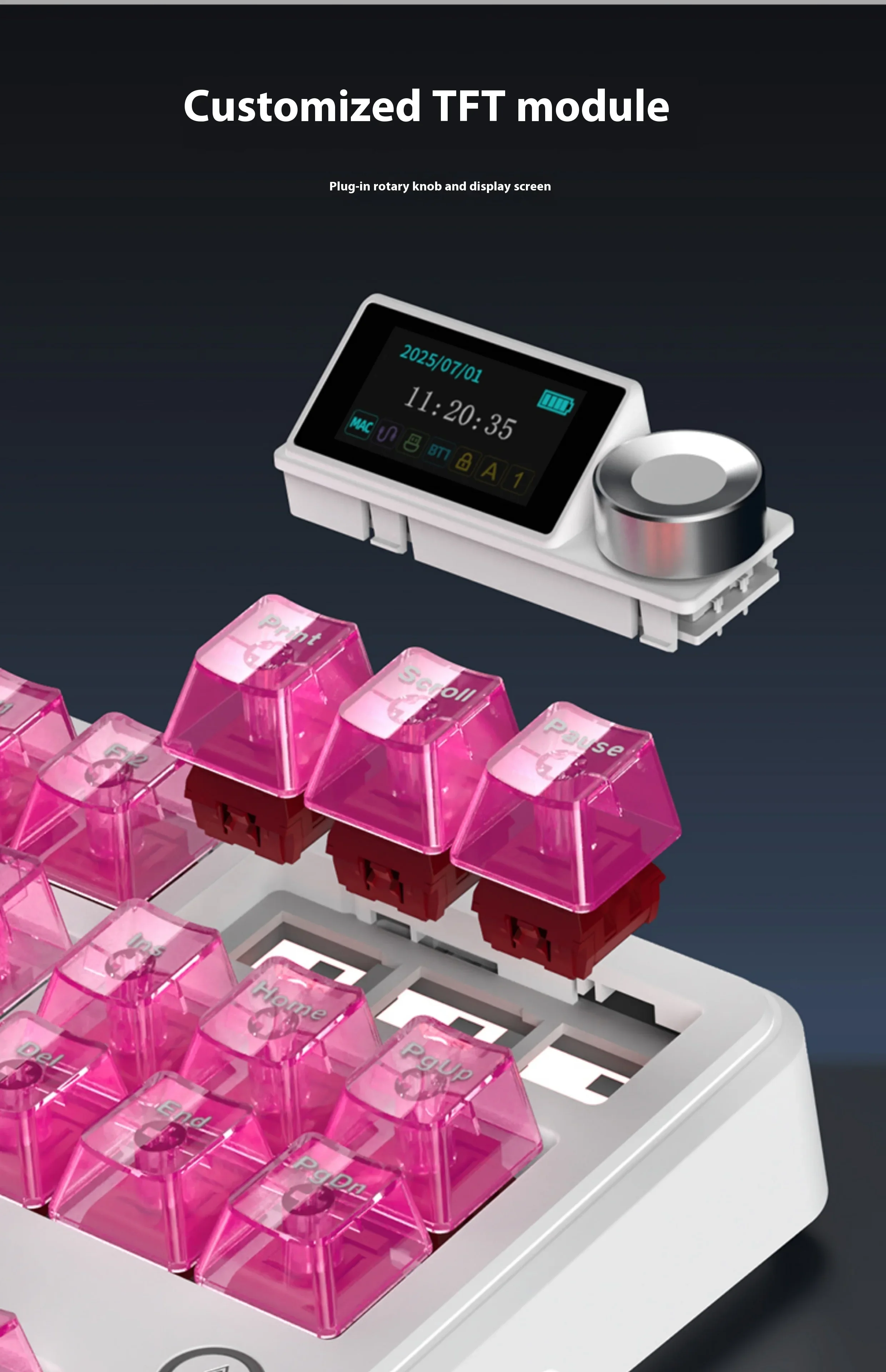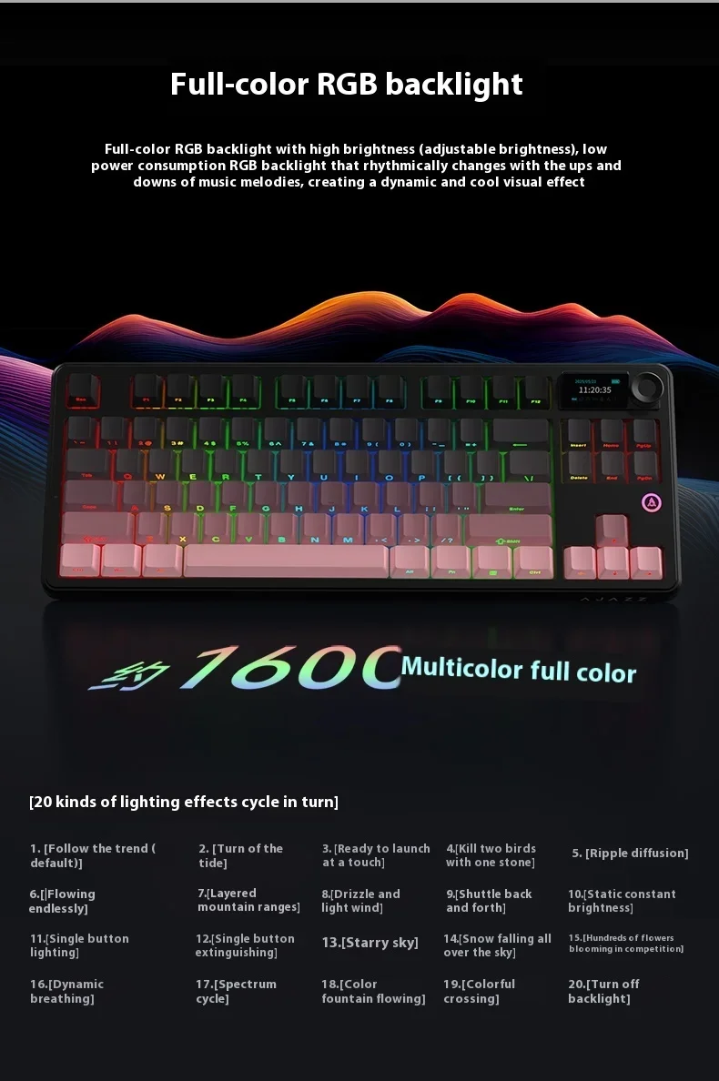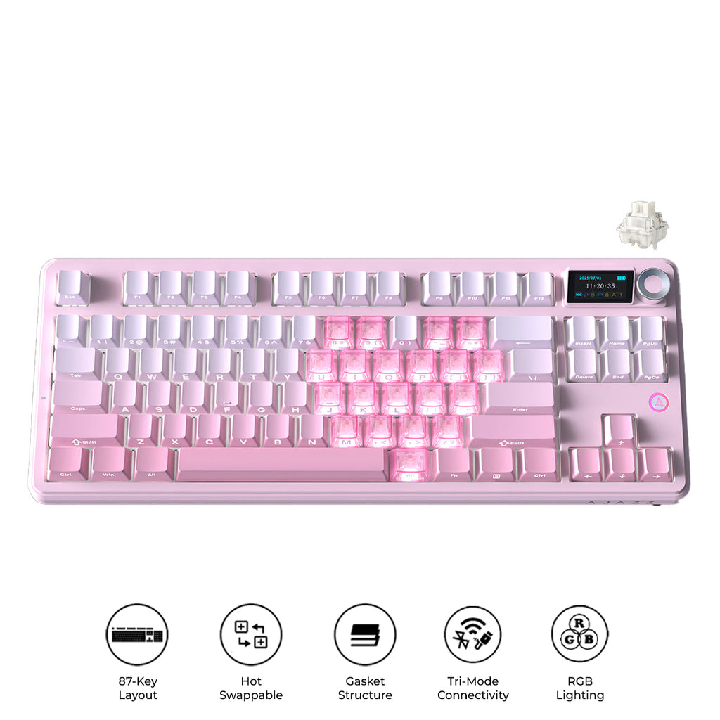 | Packing List | Keyboard ×1 Data cable ×1 2.4G receiver ×1 Manual ×1 2-in-1 switch puller ×1 Dust cover ×1 Free gift switches ×3 (Additional three keycaps included with screen version) |