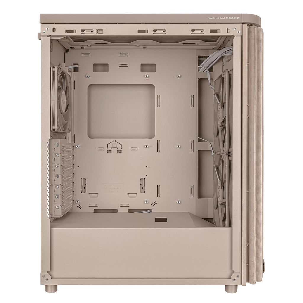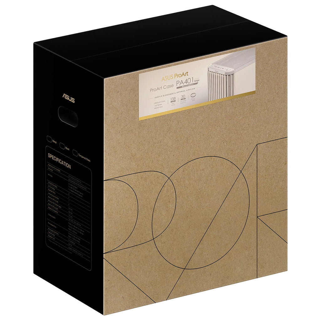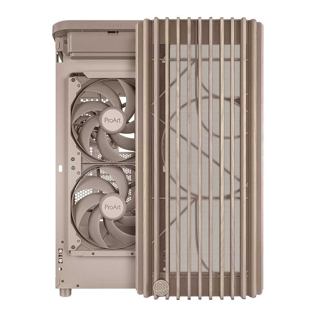 The ProArt PA401 Wood Edition Beige showcases a wooden front panel that creates a distinctive, elegant style while promoting sustainability. The wood used is certified by the Forest Stewardship Council® (FSC®), and is finished using a six-stage process. The case also boasts optimal built-in cooling, with two 160mm front fans and one 120mm rear fan, along with an integrated fan hub, enabling optimal airflow.