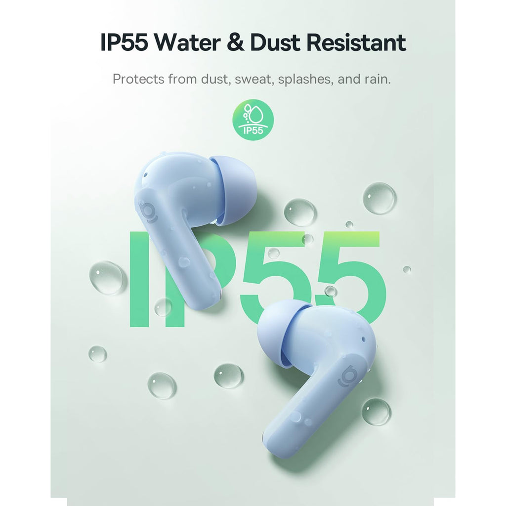 - IP55 Water-Resistant: Designed with IP55 water-resistant protection, these noise-cancelling earbuds resist sweat and rain, making them reliable Bluetooth earphones for workouts and outdoor use