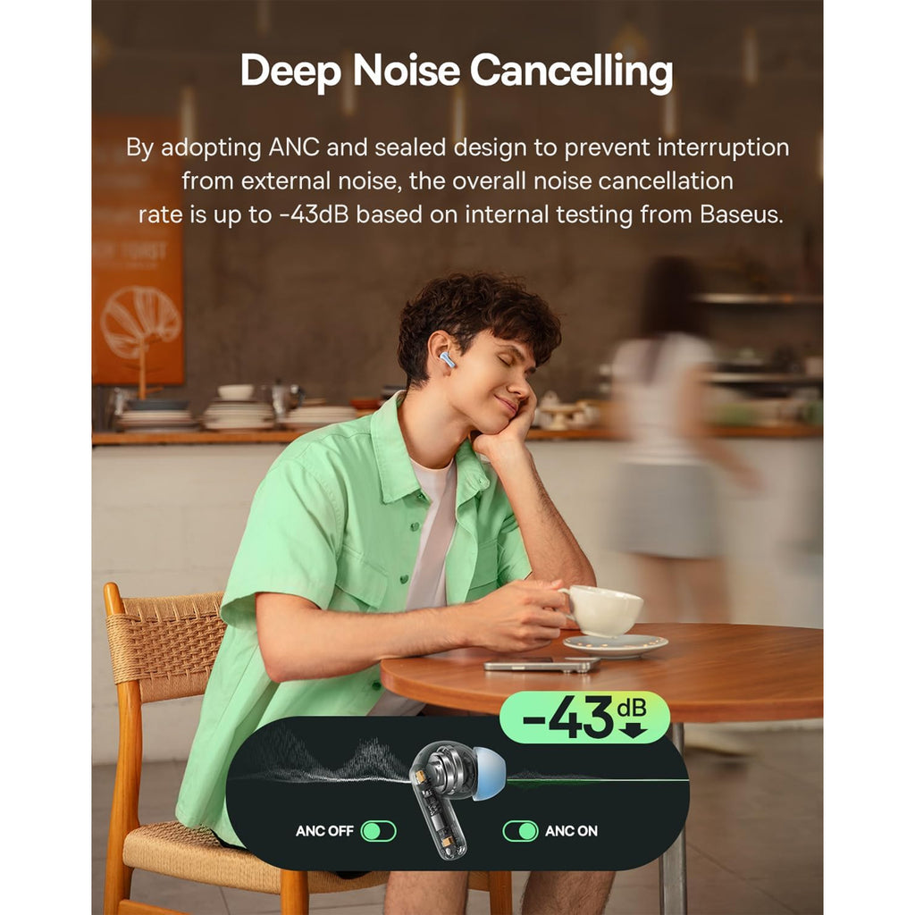 - Advanced Noise Cancelling: With powerful Hybrid ANC technology at -43dB, our noise cancelling earbuds effectively block out external noise, creating a quiet listening environment perfect for travel, noisy offices, or intense workout sessions. Simply activate ANC to transform any setting into your own immersive audio sanctuary.