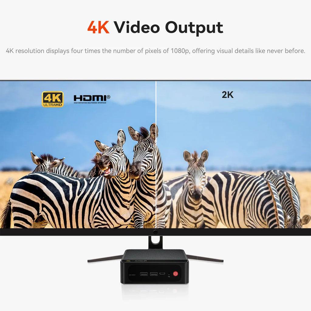 Equipped with a 6nm AMD processor, 24GB LPDDR5 RAM, and a 1TB PCIe 4.0 NVMe SSD, the SER5 MAX provides ultra-fast load times, smooth gaming, and ample space for all your files, projects, and media.