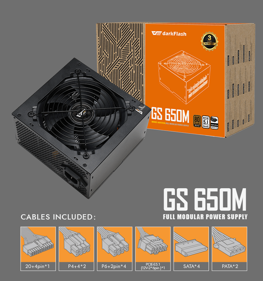 DarkFlash GS 650M 650W 80+ Bronze PCIe 5.1 Ready Full Modular Power Supply