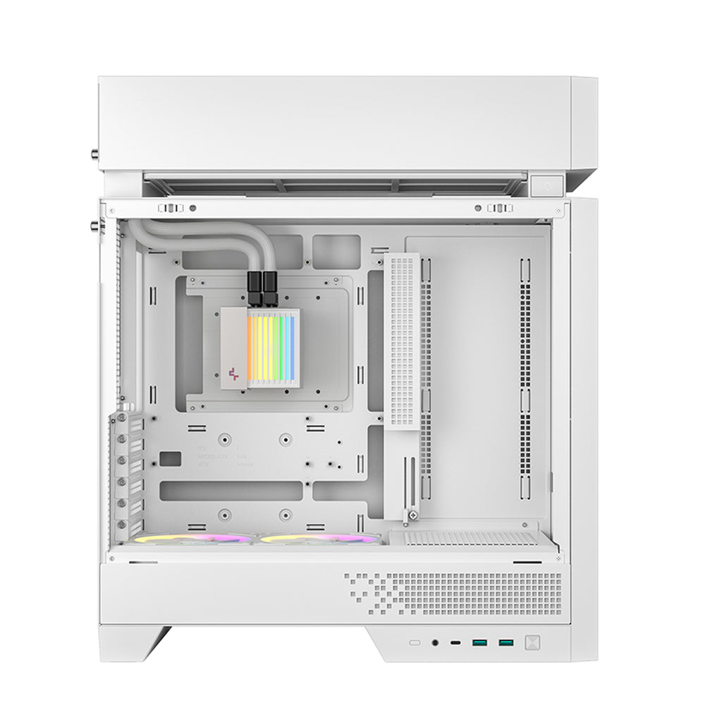 CL6600 rethinks case design for the liquid-cooling era. By physically separating thermal zones and airflow paths, it prevents heat buildup and cross-interference that conventional layouts can’t avoid. It also comes with an advanced 360mm liquid cooler and dual bottom ARGB fans, delivering strong performance and creating a vibrant interior.