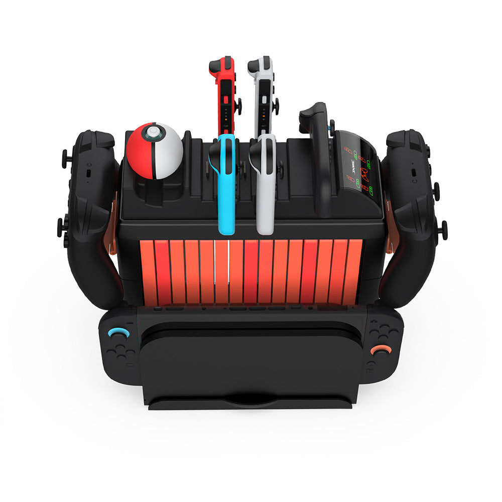 This product is a multi-functional charging station for the NS/NS OLED/N-S2 series Joy-Con controllers and Poké Ball Plus (together NS/NS OLED, collectively referred to as N-S1). It supports charging for the N-S1/N-S2 Joy-Cons (L/R), N-S1/N-S2 Pro controllers, and Poké Ball Plus.