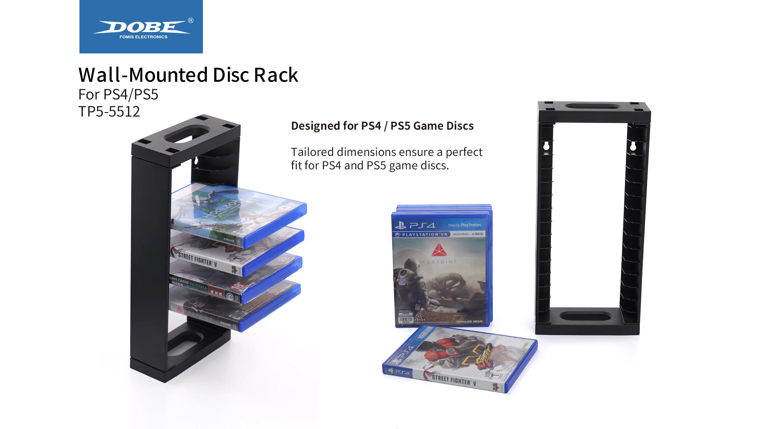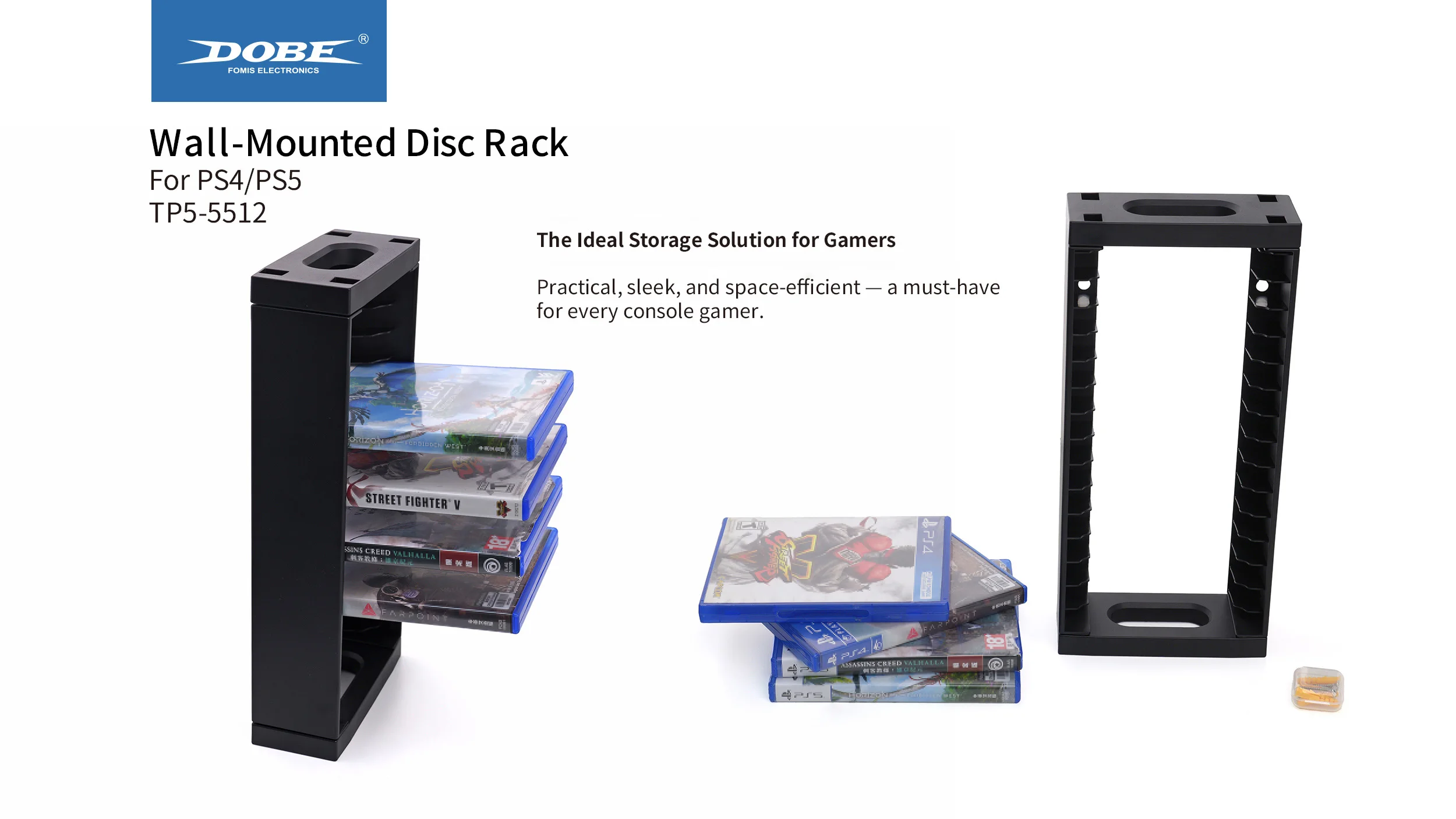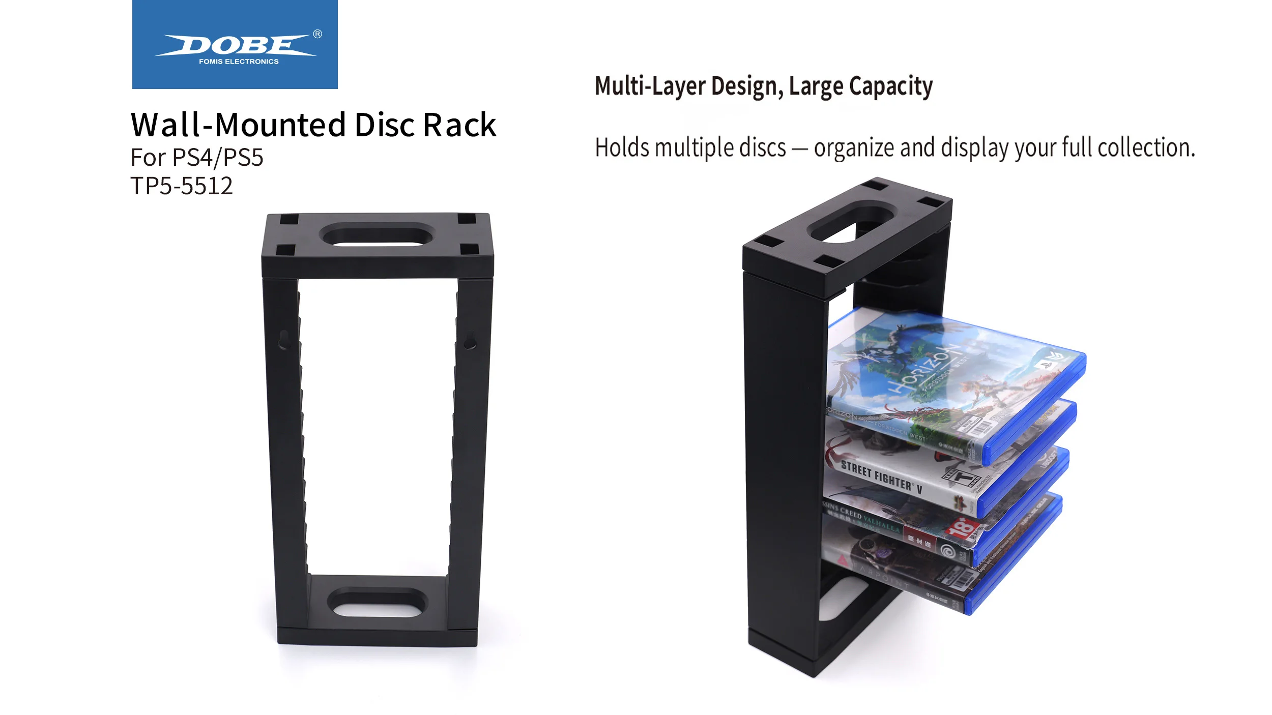 Product name Wall-Mounted Disc Rack Type  PS Series Game Accessories Feature Multi-Layer Design , Large Capacity Model Number TP5-5512 Compatible Platform PS4/PS5 Product Introduction:1、Designed for PS4 / PS5 Games2、The Ideal Storage Solution...
