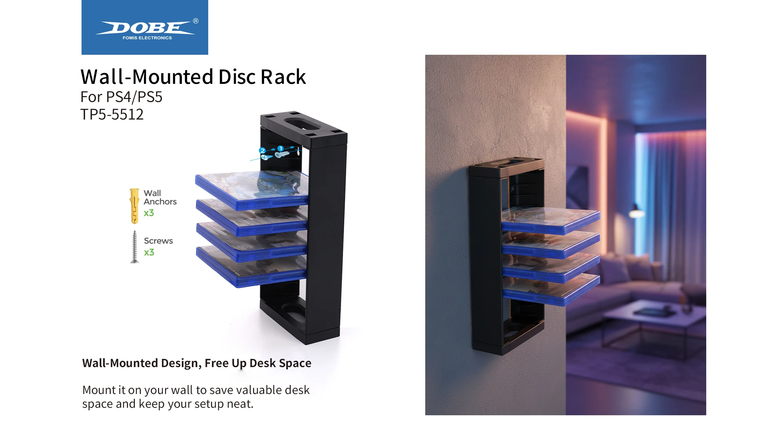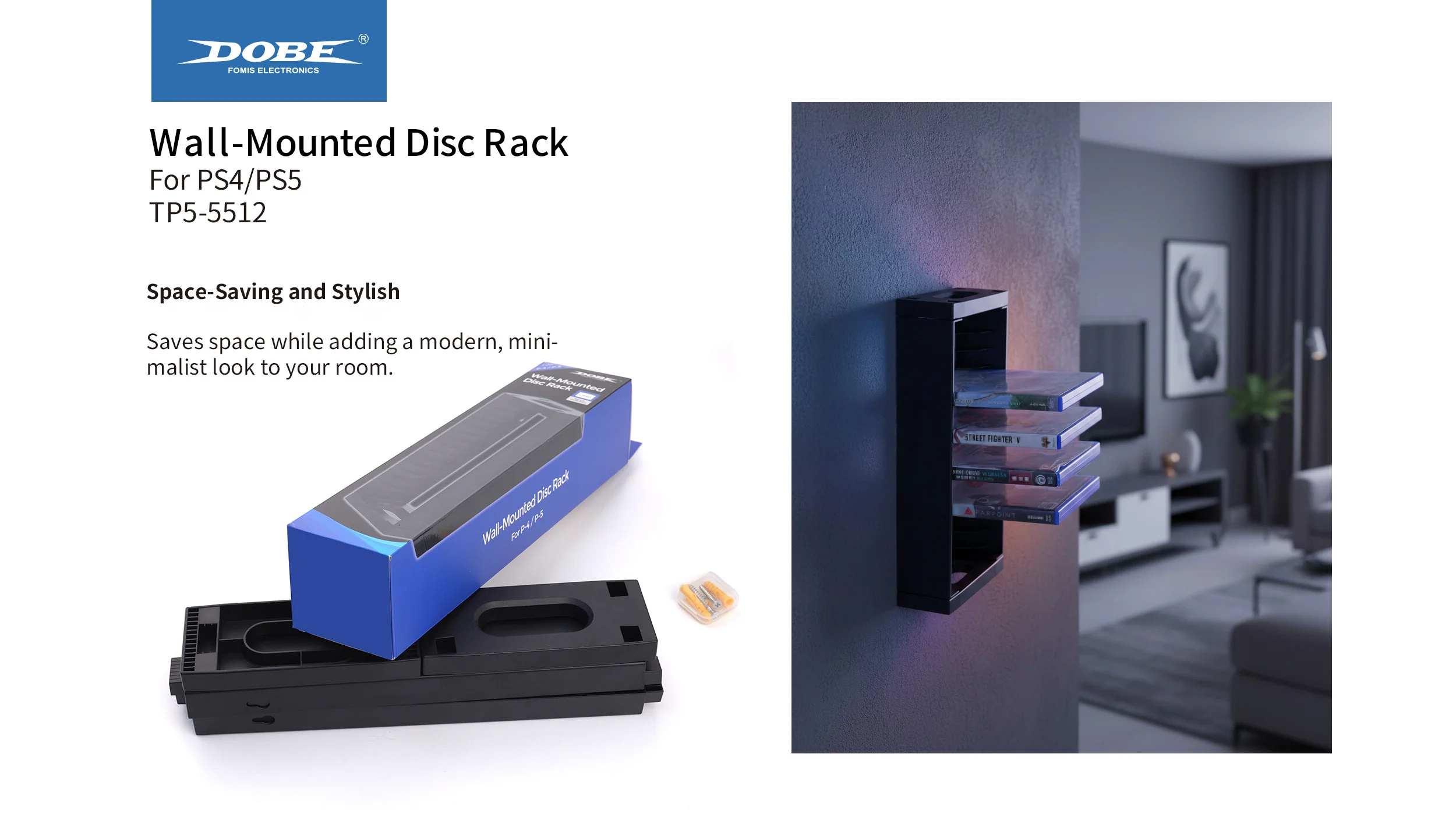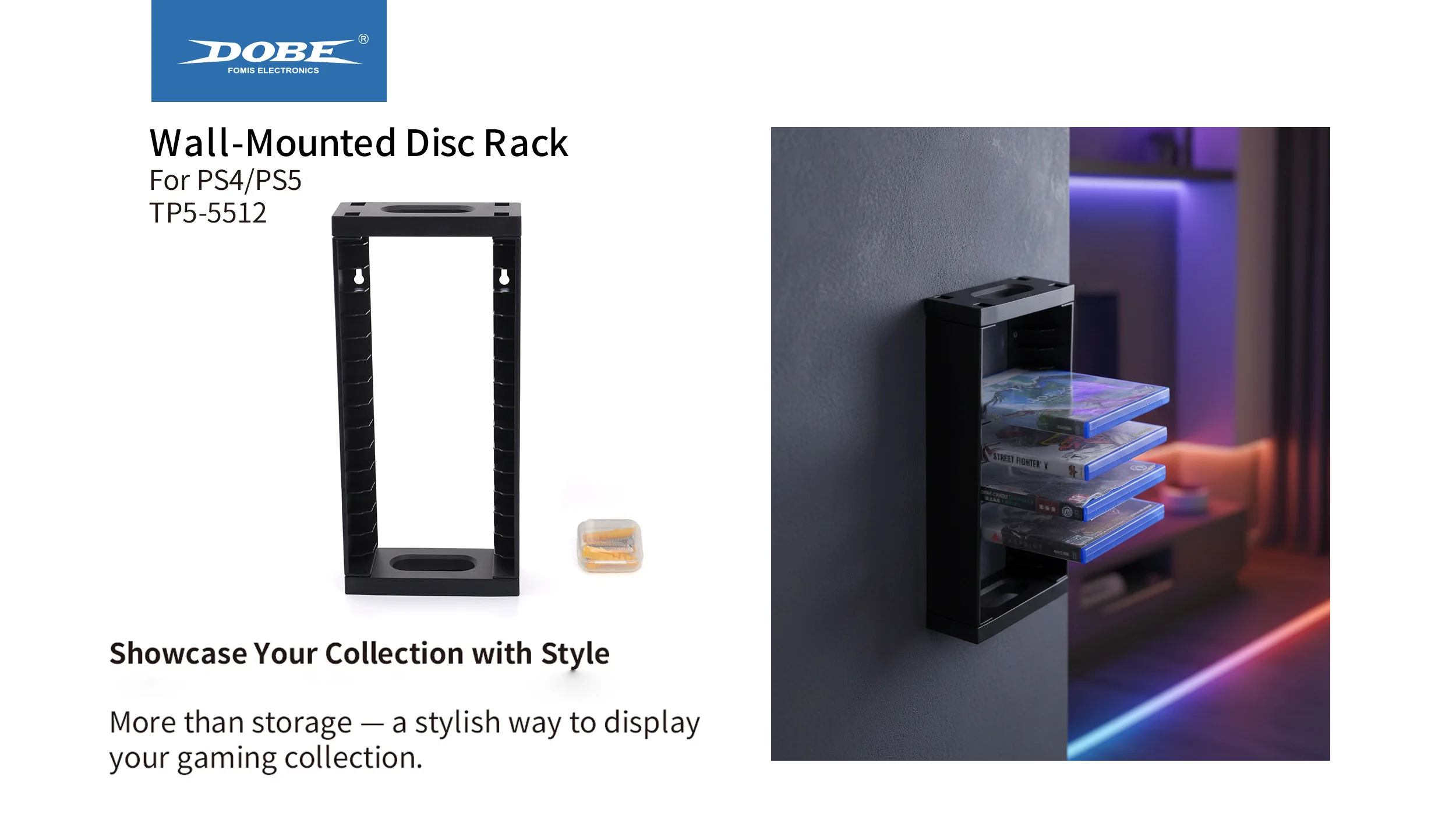 Product name Wall-Mounted Disc Rack Type  PS Series Game Accessories Feature Multi-Layer Design , Large Capacity Model Number TP5-5512 Compatible Platform PS4/PS5 Product Introduction:1、Designed for PS4 / PS5 Games2、The Ideal Storage Solution...