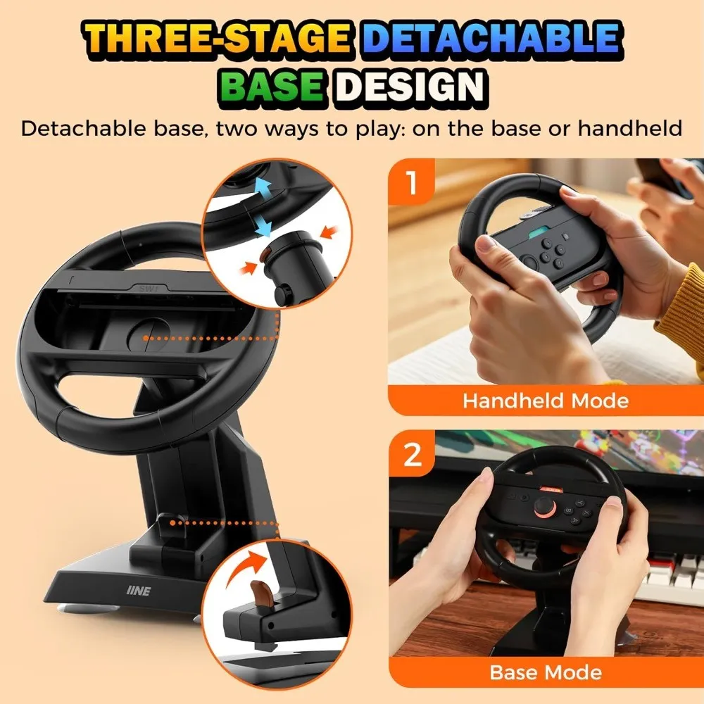 - Dual Use Design Can be used as a handheld steering wheel or combined with the included stand for a more immersive racing experience