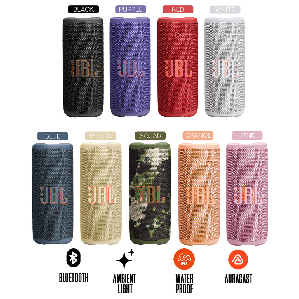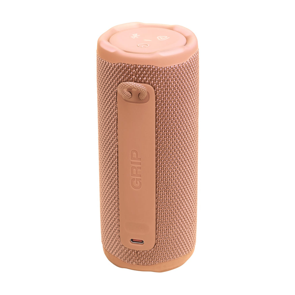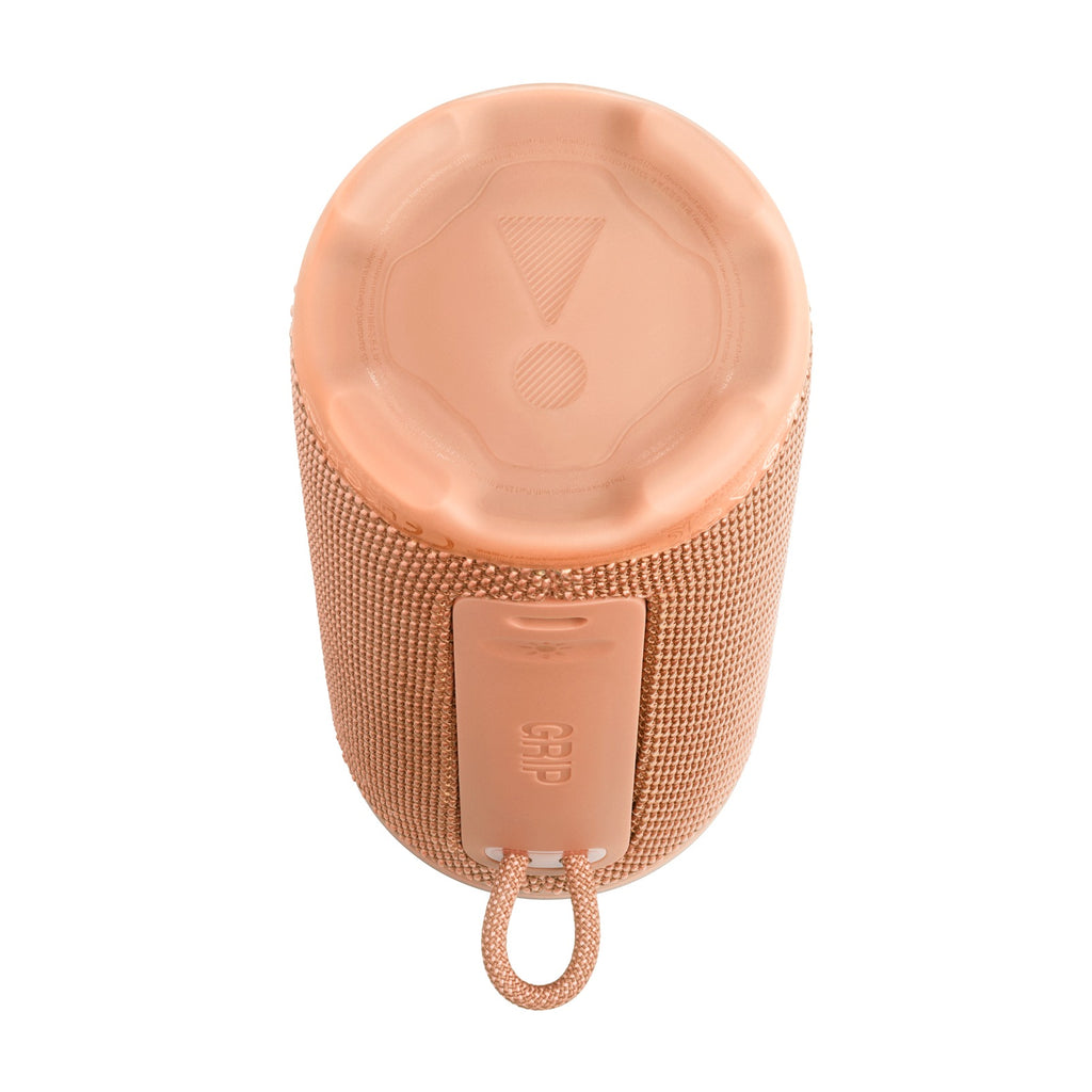 Easy to grab and easy to hold, the JBL Grip is the speaker that’s always within reach. The JBL Grip is powerful for its size. JBL Grip may be compact, but its pro sound is big—punchy bass and crystal-clear highs. Whether it’s setting the vibe for mindful morning stretches or soundtracking lazy beach days, the JBL Grip is our go-to. The built-in ambient light on the back panel adapts to the moment, so you can set the mood for chill date nights and spontaneous hangs. Use the convenient side-panel control button to switch between light themes, so the mood is always right whether you're winding down or turning up. Did we mention it’s super tough? The JBL Grip is built to handle anything. With an industry-leading IP68 waterproof and dustproof rating, it goes wherever we do. Its drop-proof design means it can survive a hard fall onto concrete—no party fouls here. All that, plus up to 14 hours of playtime with Playtime Boost. When friends roll through, we’re using Auracast™ to stereo pair two Grips for instant surround sound. Why stop there? We can connect as many JBL Auracast™-enabled speakers as we’ve got for an all-out sound experience. Solo chillin’ or vibing with the crew—the JBL Grip is as flexible as we are.