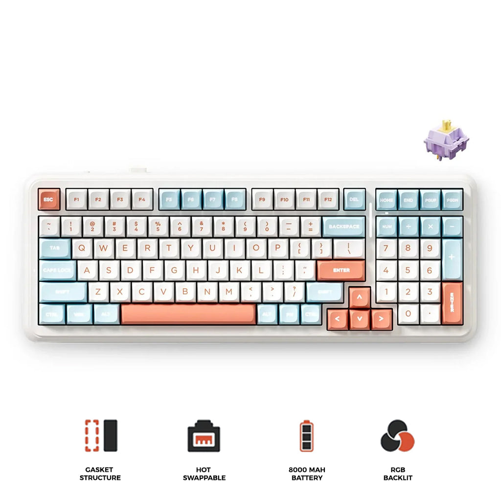 MCHOSE K99 V2 RGB Tri-Mode Hot-Swappable Mechanical Keyboard (Horizon Orange) (Hyacinth Purple Switch)