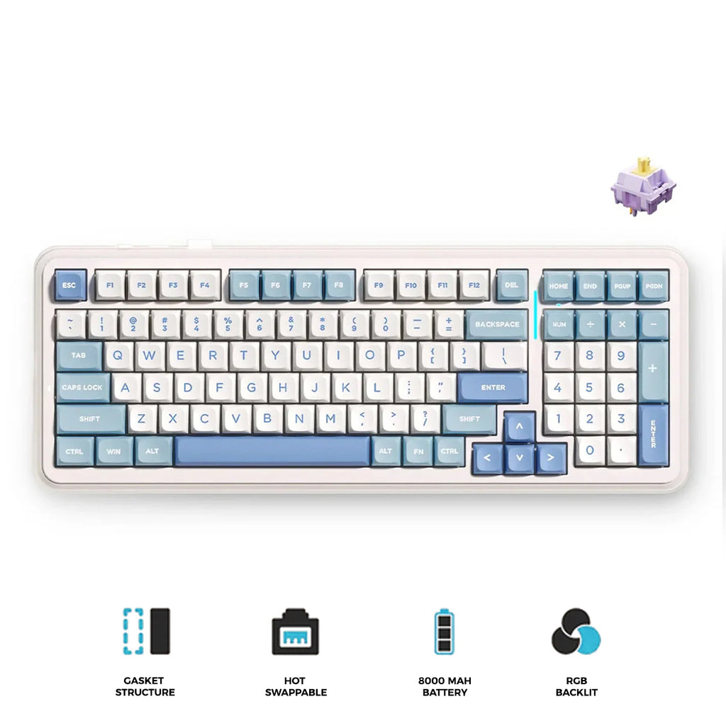 MCHOSE K99 V2 RGB Tri-Mode Hot-Swappable Mechanical Keyboard (Sky Blue) (Hyacinth Purple Switch)