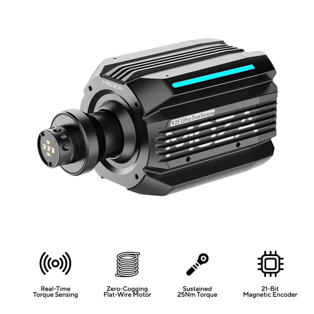 Unlock pro-level sim racing precision with the MOZA R25 Ultra True Torque Direct Drive Wheel Base. Featuring a 25Nm sustained torque motor, built-in true torque sensor, zero-cogging flat-wire motor, 21-bit magnetic encoder, and advanced FFB algorithm, the R25 delivers unmatched responsiveness, realism, and control for esports and professional racing enthusiasts.