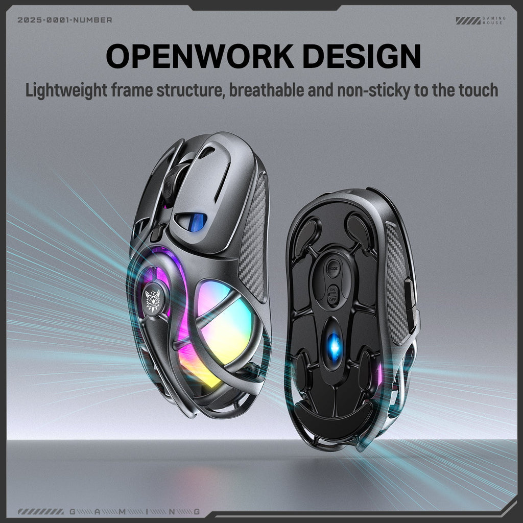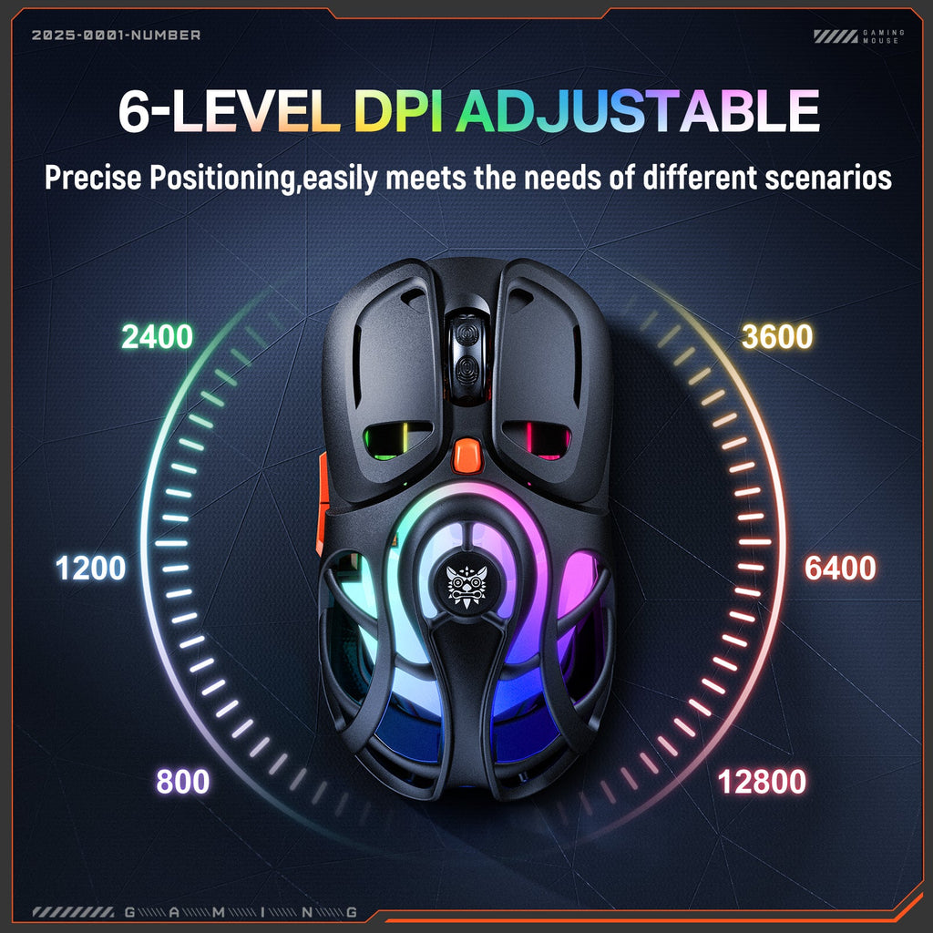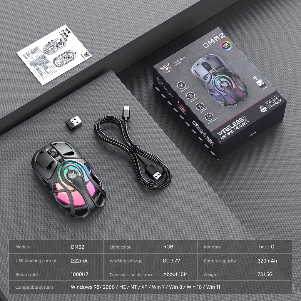 ONIKUMA DM02 Tri-Mode RGB Gaming Mouse - Lightweight Honeycomb Shell, 1000Hz Polling Rate & 6-Level DPI