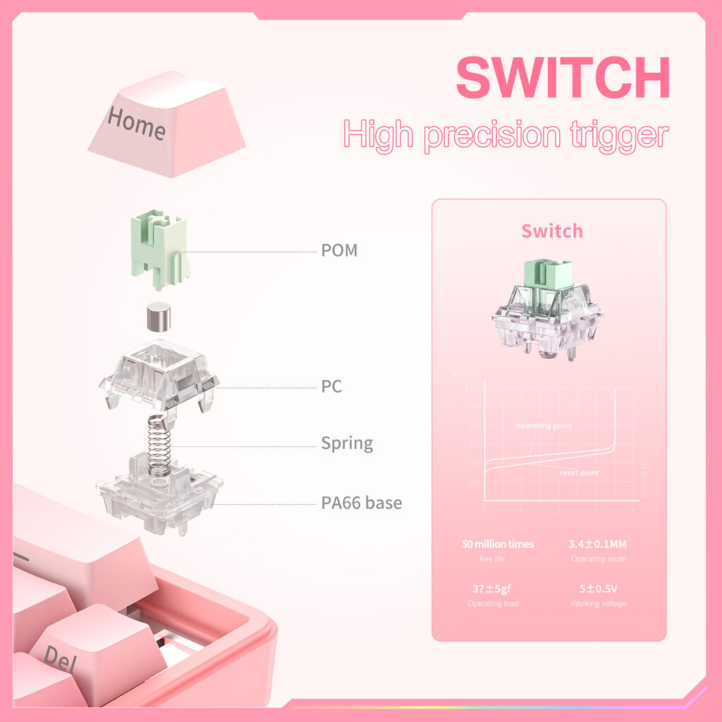 Onikuma G69 68 Keys RGB Wired Magnetic Switch Keyboard (Pink)