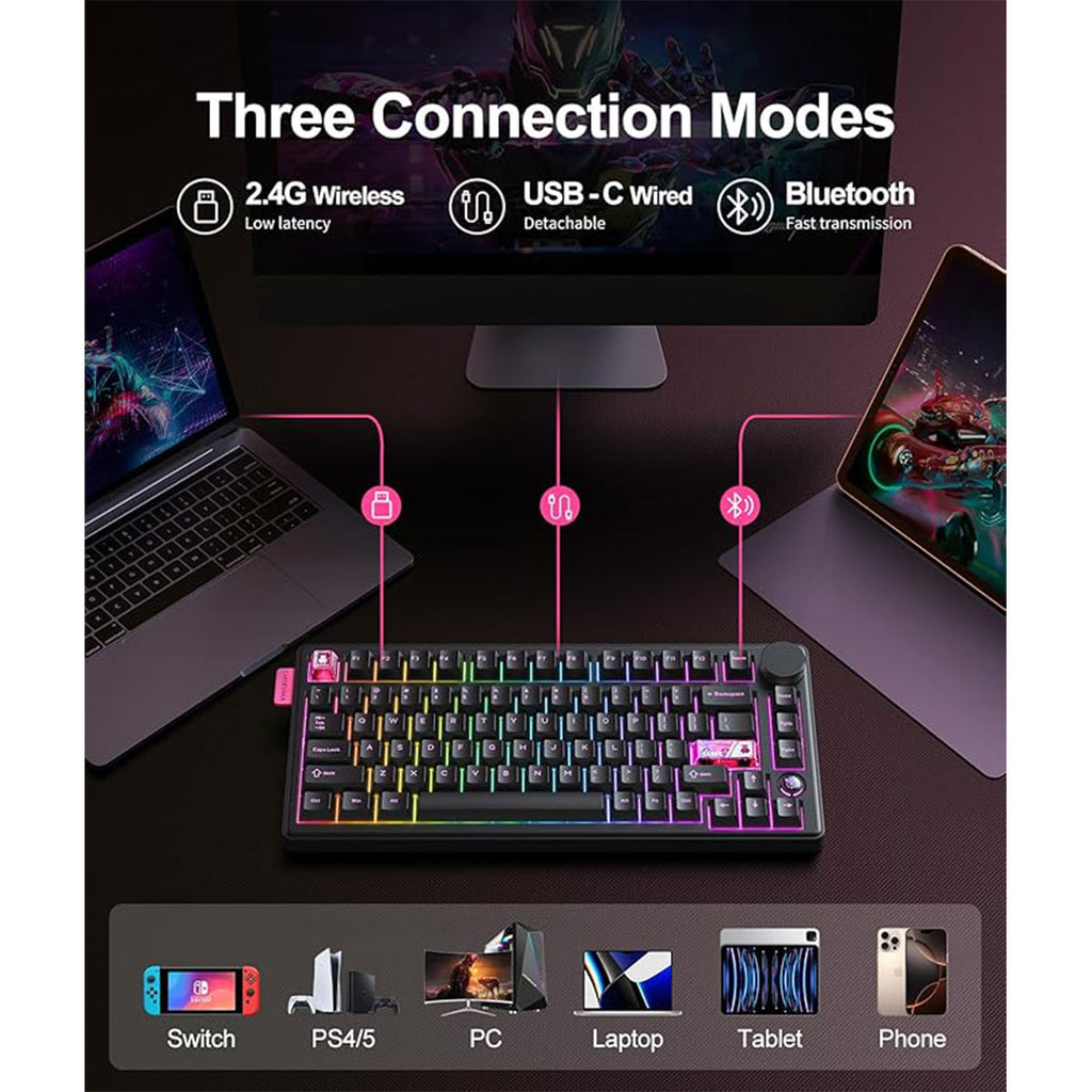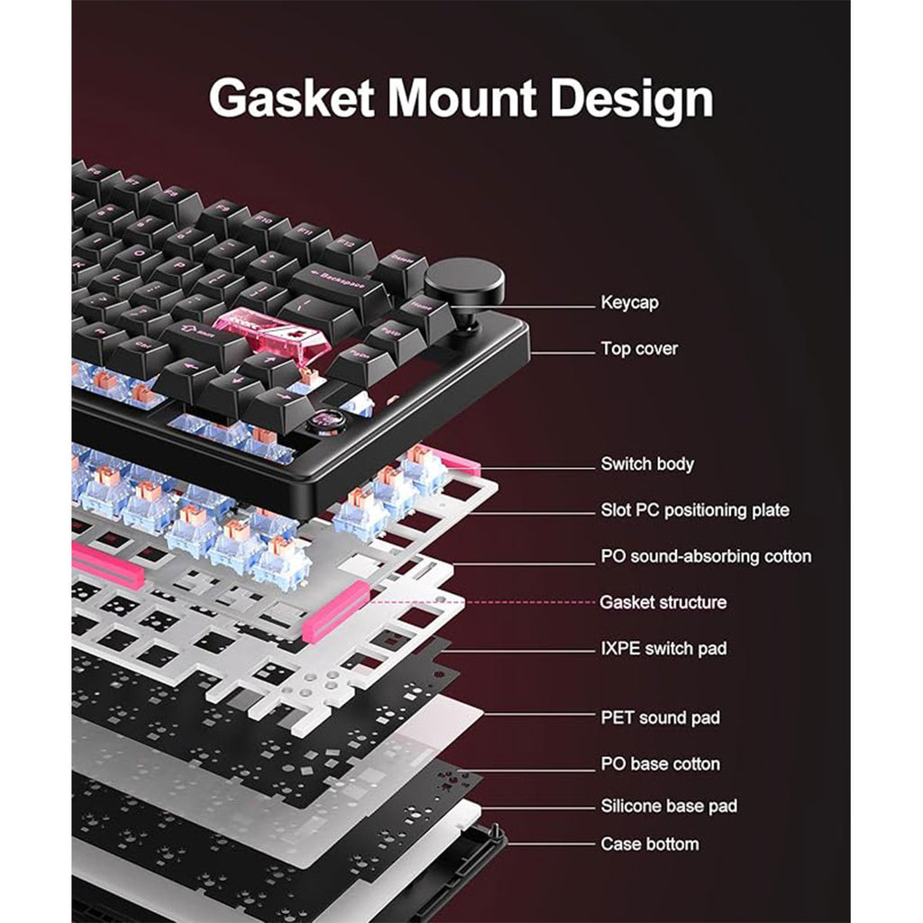Onikuma MT706 Tri-Mode RGB 81 Keys Mechanical Keyboard with Knob (Black)