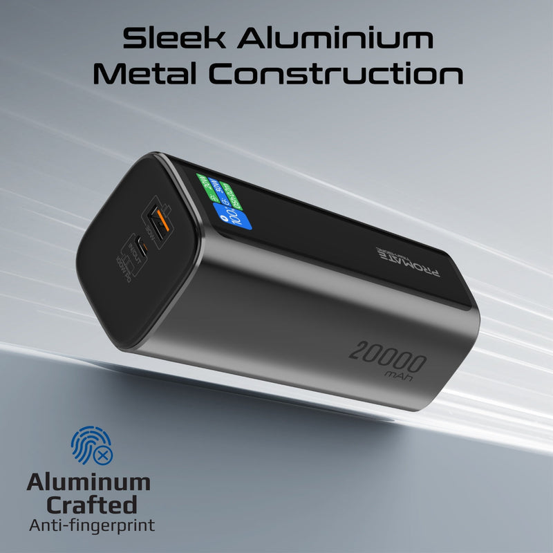 Step into a world of unparalleled power with Promate’s Titan-130RC, the ultimate charging companion crafted for those who demand more. Boasting a massive 20000mAh capacity and a 130W total output, this power bank charges all your devices at breakneck speeds. The USB-C™ Power Delivery port and built-in retractable USB-C cable ensure seamless charging, while the 30W Qualcomm QC 3.0 port adds versatility. Designed with a sleek metal construction and featuring an integrated smartphone stand for added convenience, it’s a perfect blend of function and style. The vibrant TFT LCD display keeps you informed, while advanced overcharging and overheating protection ensure safety. Whether you're at home, in the office, or on the move, Promate Titan-130RC delivers rapid power and unprecedented versatility.