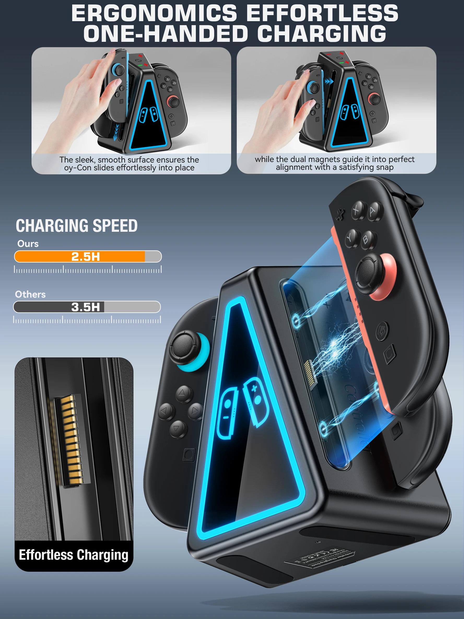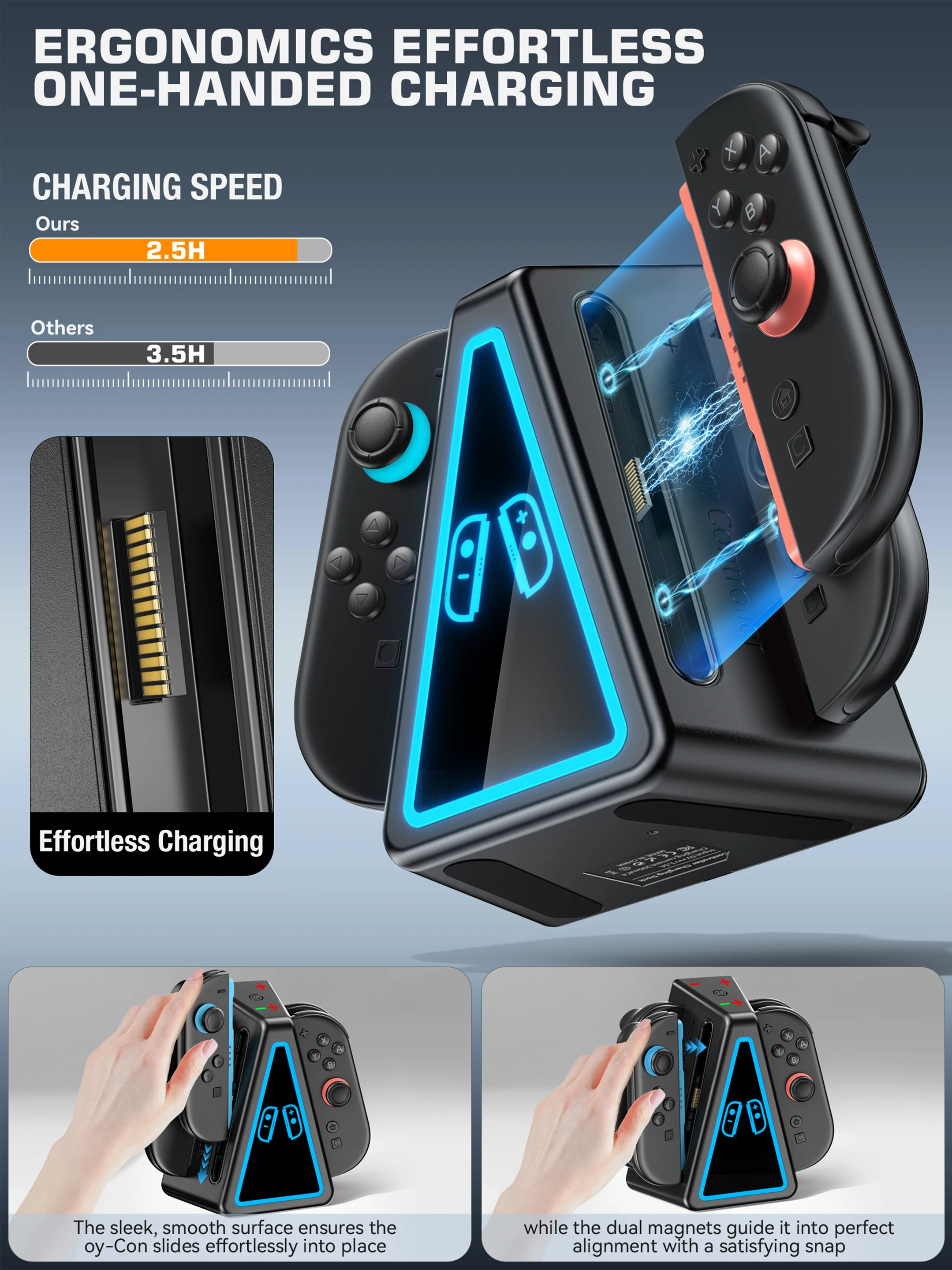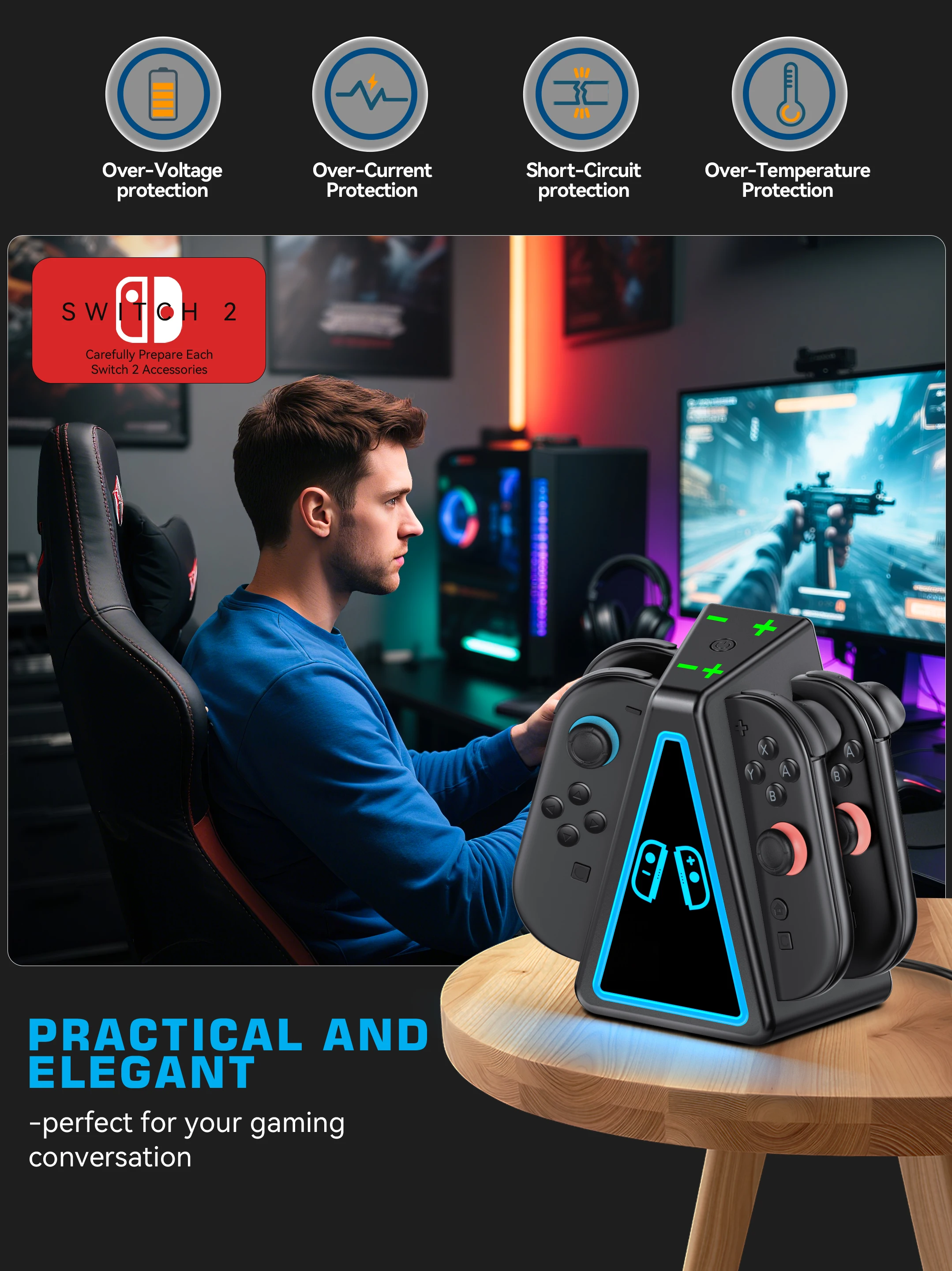 Specially designed for the Nintendo Switch 2 Joy-Con controllers, this magnetic Switch controller charging station delivers effortless and fast charging 4 Joycons.