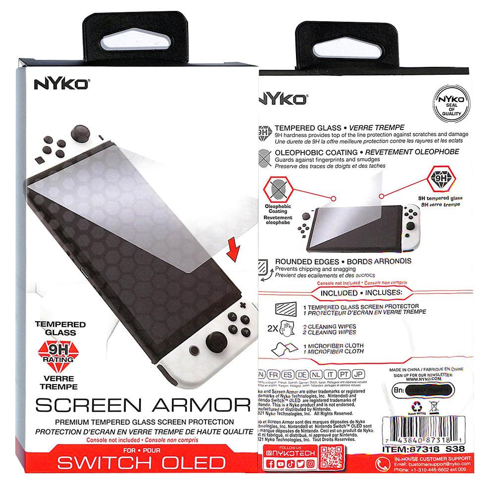 Protect the screen of the Nintendo Switch™ with Screen Armor from Nyko. Screen Armor protects against scratches, chips, fingerprints and smudges. A 9H hardness rating tempered glass screen protector provides top of the line protection and the rounded edges prevent chipping and snagging. The Oleophobic coating helps guard the screen against everyday wear and tear. Screen Armor is thin enough to be applied and allow the console to be docked to enjoy TV Mode. Included in the package is a set of cleaning wipes to prepare the screen before applying Screen Armor.