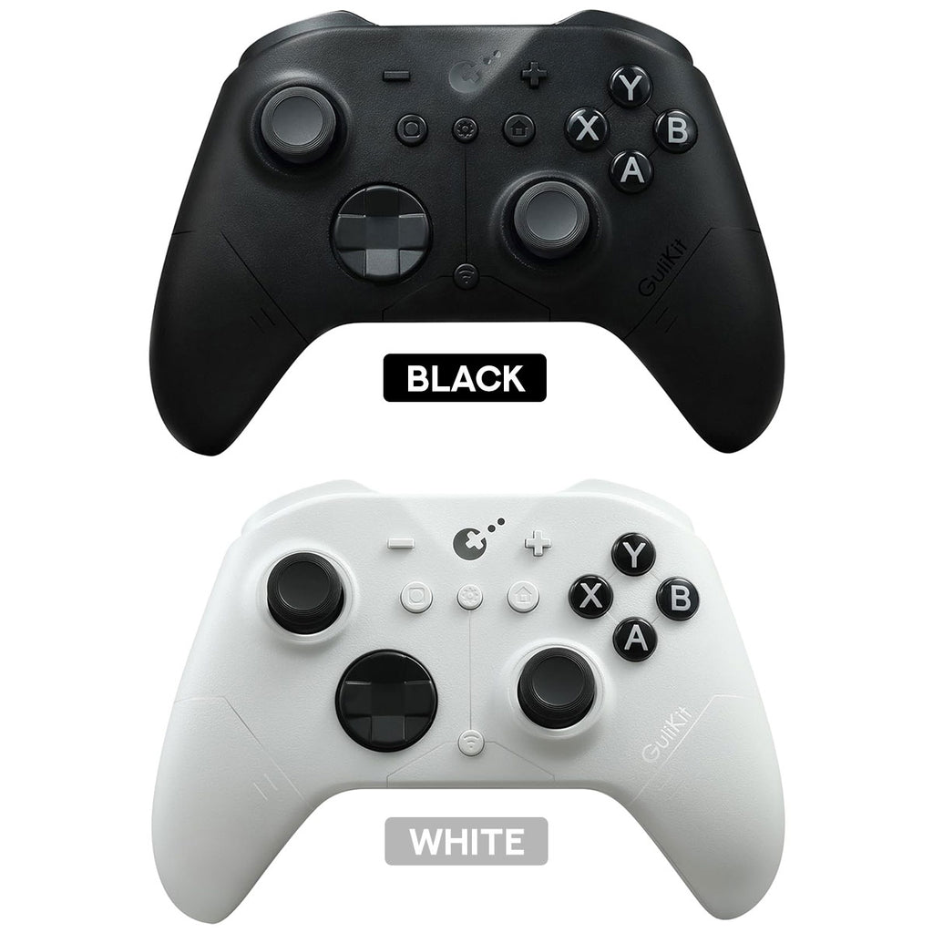 Supports joystick sensitivity and vibration adjustment, Turbo, 6-axis gyroscope motion control on Switch, patented Gyro Motion Aim for PC FPS gaming, joystick dead-zone on/off, D-pad 8/4-direction mode, and physical ABXY swap (Switch-layout keycaps not included). Customize freely on the controller itself or through the GuliKit web-based configuration tool.