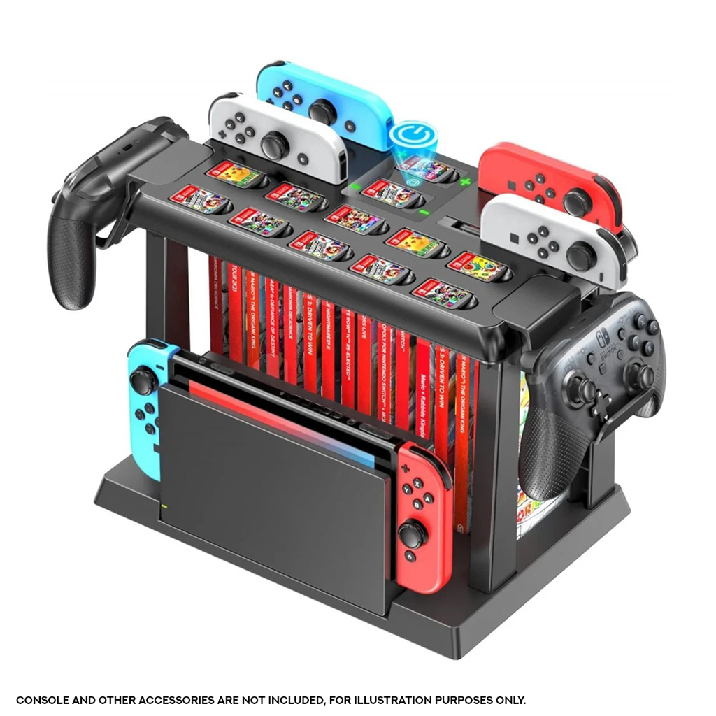 Featuring dedicated charging slots for up to two Joy-Con pairs and one Pro Controller, it delivers fast and reliable charging, so you’re always ready for your next gaming session. The built-in game card storage slots keep your game collection within easy reach, while the compact and sleek black design blends seamlessly into any gaming space.