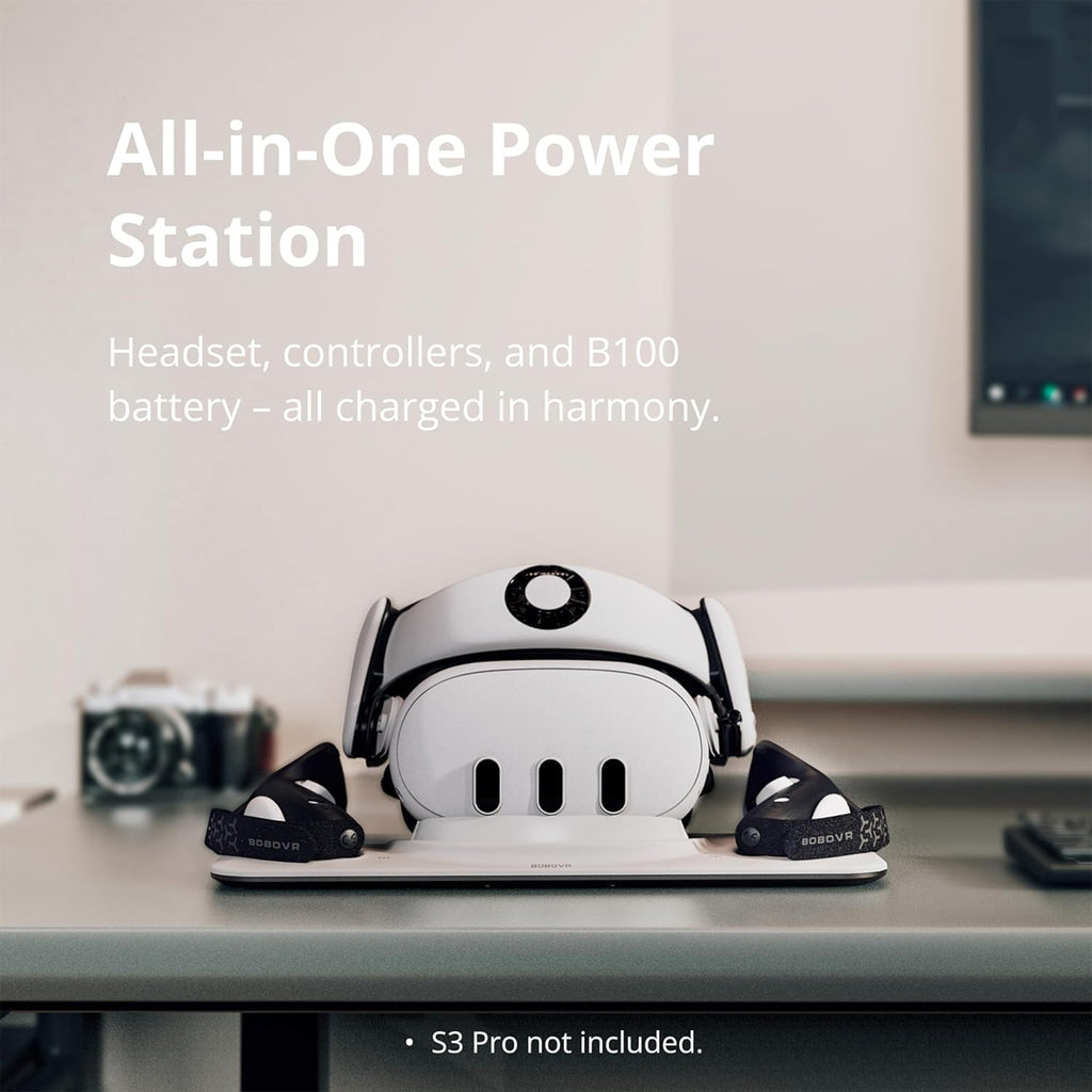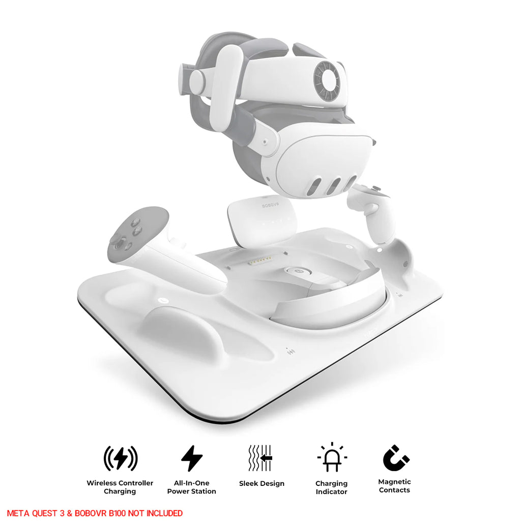 - All-in-One Charging: This compact station charges your Q3 headset, controllers, and B100 battery simultaneously. Just place them in and they start charging - keeping your space tidy and your gear ready.